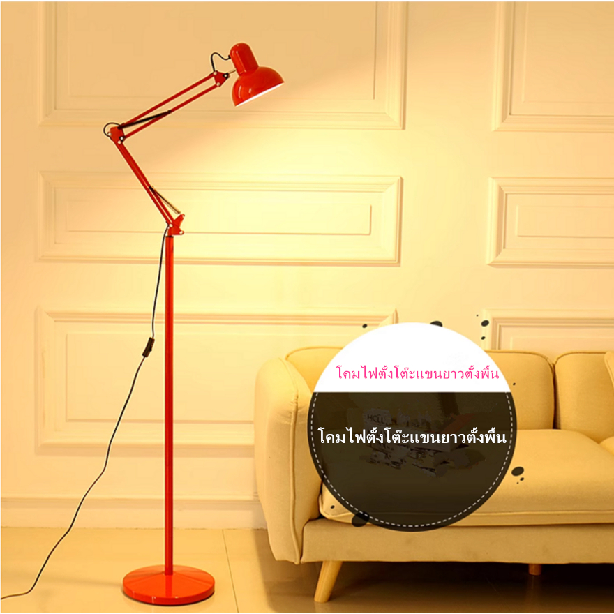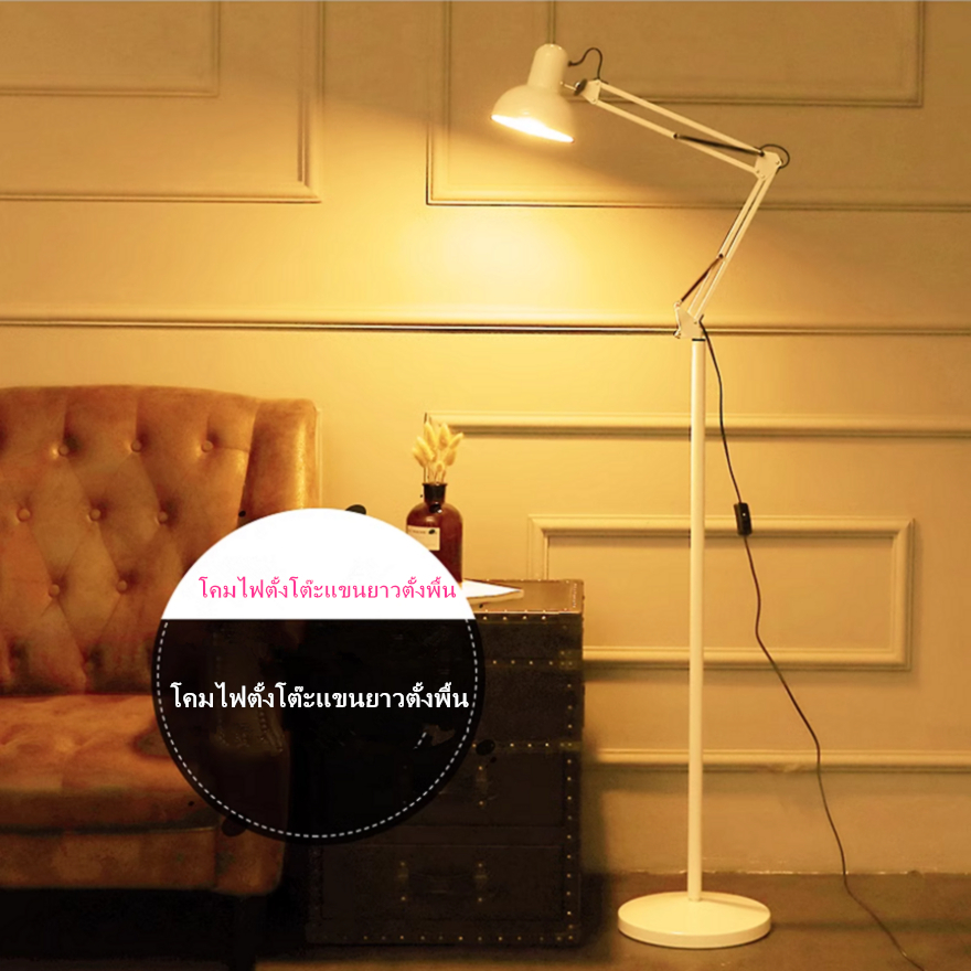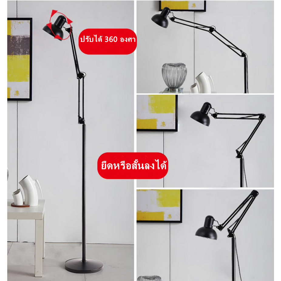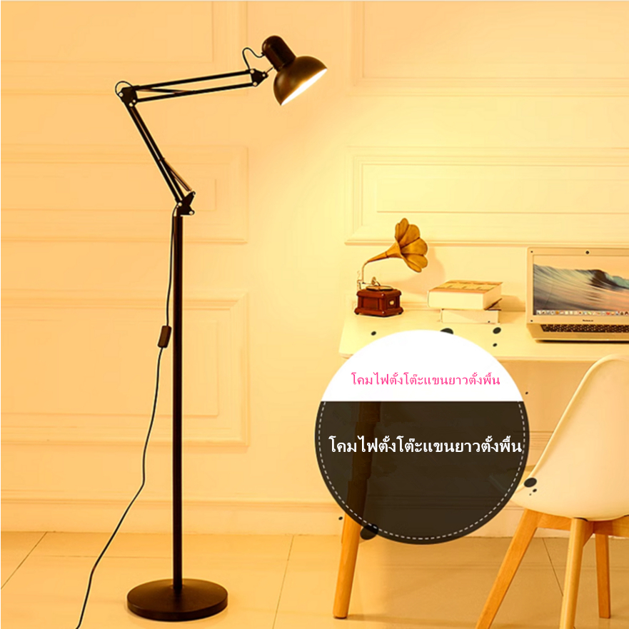 โคมไฟตั้งโต๊ะแขนยาวตั้งพื้น ปรับหมุนได้ 360 องศา ใช้กับขั้วหลอดE27