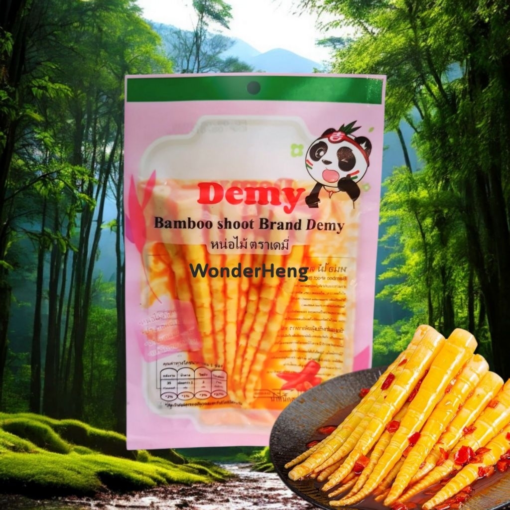 หน่อไม้จีน อย.ไทย เนื้อกรอบ ตราเดมี่ ผลิตจากโรงงานแพนด้าเจ้าดัง หน่อไม้รสเผ็ดพริก (1 ซอง) 60 กรัม