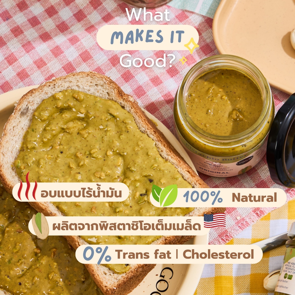 เนยถั่วคลีน เนยถั่วพิสตาชิโอ100% รสออริจินัล เนื้อหยาบ Pistachio butter ไม่ใส่น้ำตาล