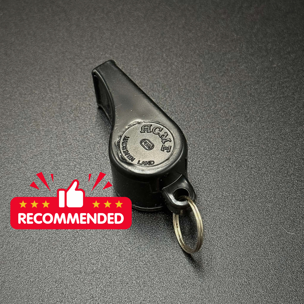 ACME whistle นกหวีดพลาสติก สำหรับเข้าเวร มีห่วงคล้อง สีดำ