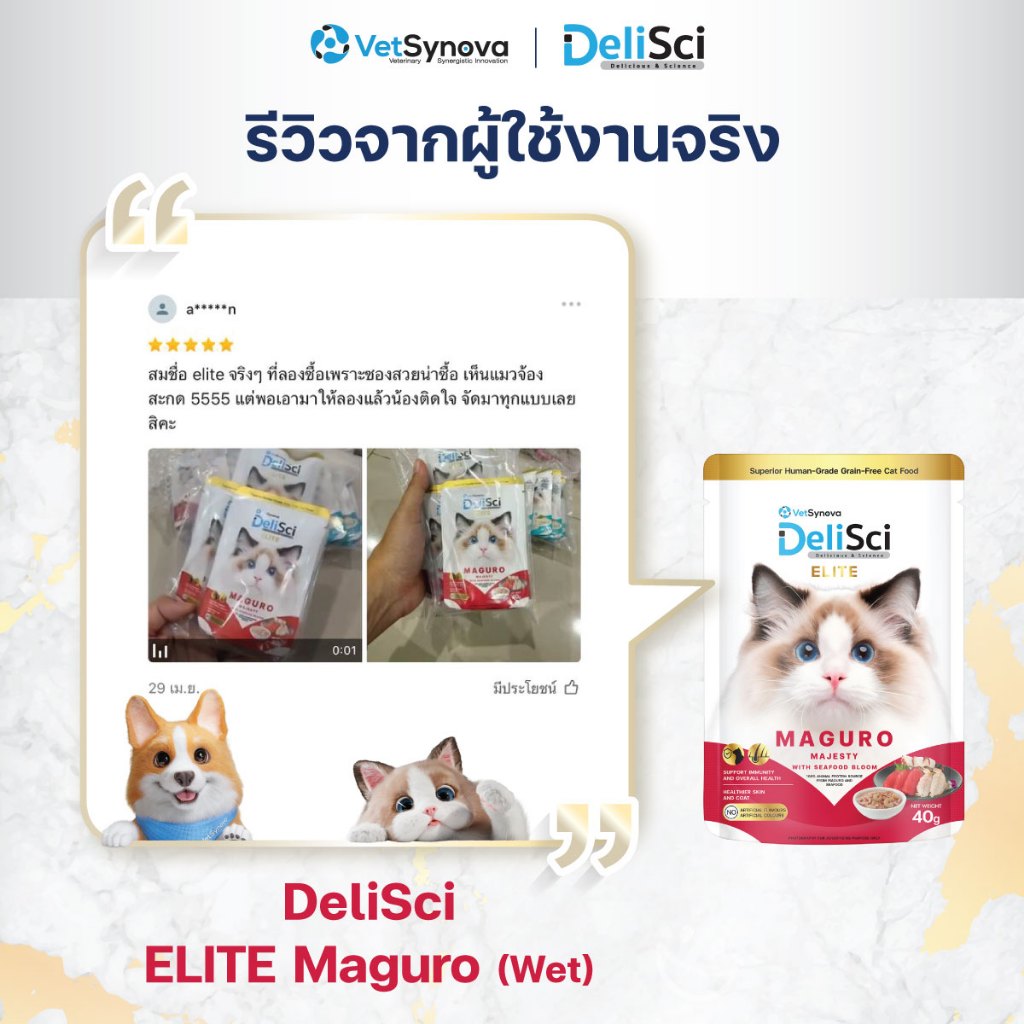 DeliSci Elite Maguro Majesty with Seafood Bloom อาหารเปียกแมว สูตรเนื้อปลามากุโระ พร้อมชิ้นซีฟู๊ด 40g (6 ซอง)