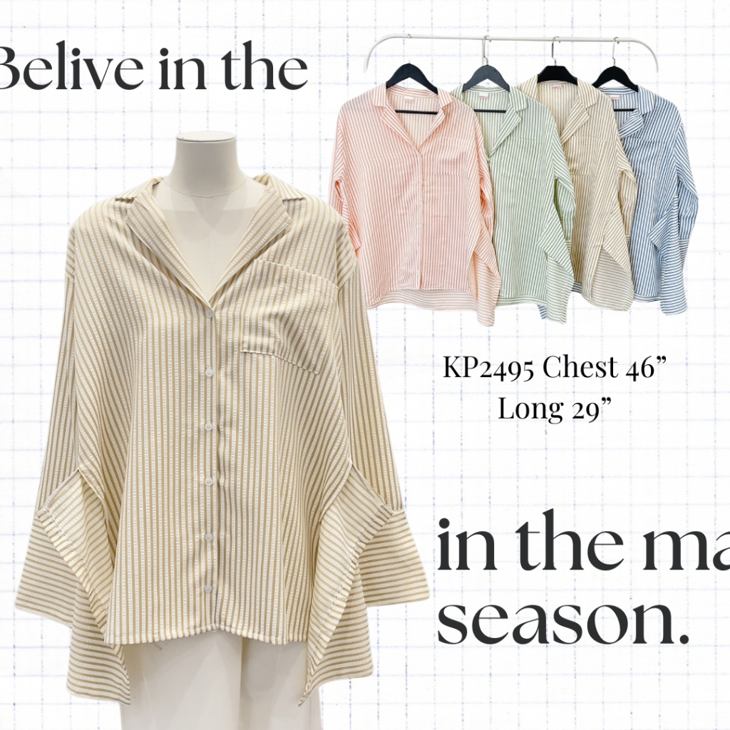 "อก46" เสื้อฮาวาย แขนยาวผ้าริ้วสุดเท่ ทรงฮาวายที่ใส่แล้วดูมีสไตล์แบบ effortless 😎-2495