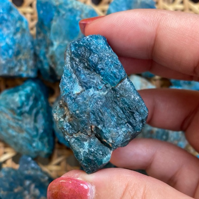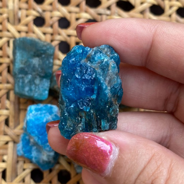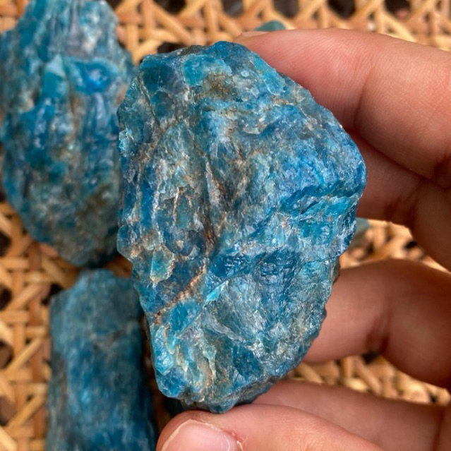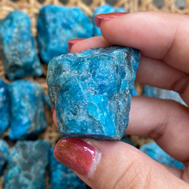 Blue apatite บลูอะพาไทต์ดิบ เป็นหินที่ช่วยอดทนต่อความอยากอาหาร ช่วยให้รู้สึกดีในตนเอง ช่วยการเจรจากับลูกค้าประสบผลสำเร็จ
