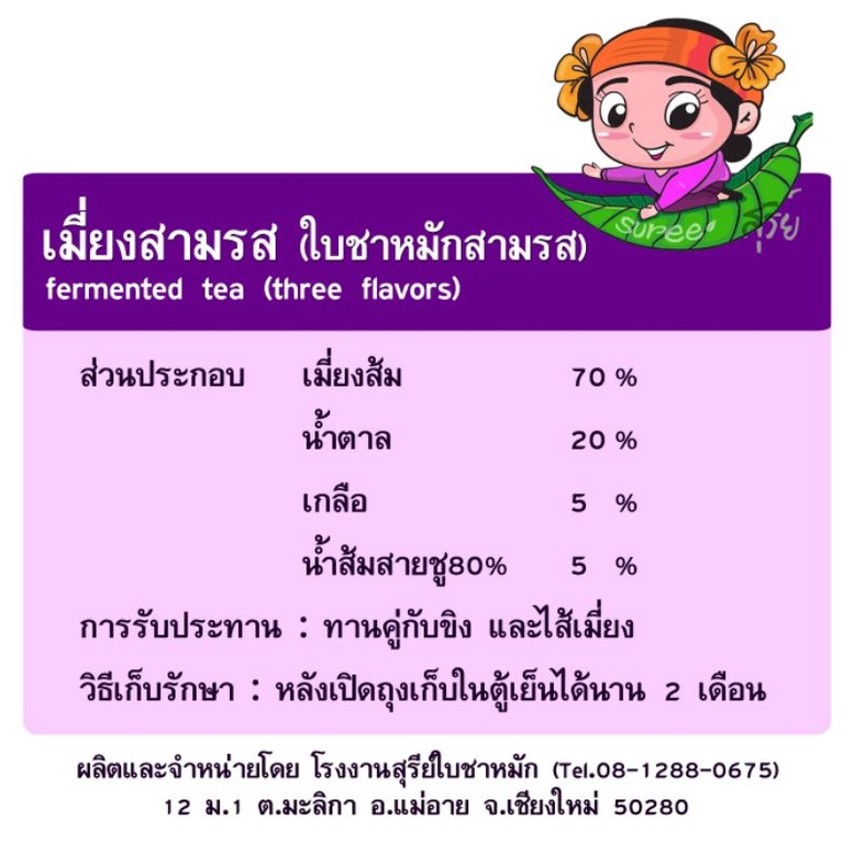 เมี่ยงหวาน (ใบชาหมักรสหวาน) #fermented tea (Sweet flavor) ถุง150-200กรัม #สุรีย์ใบชาหมัก