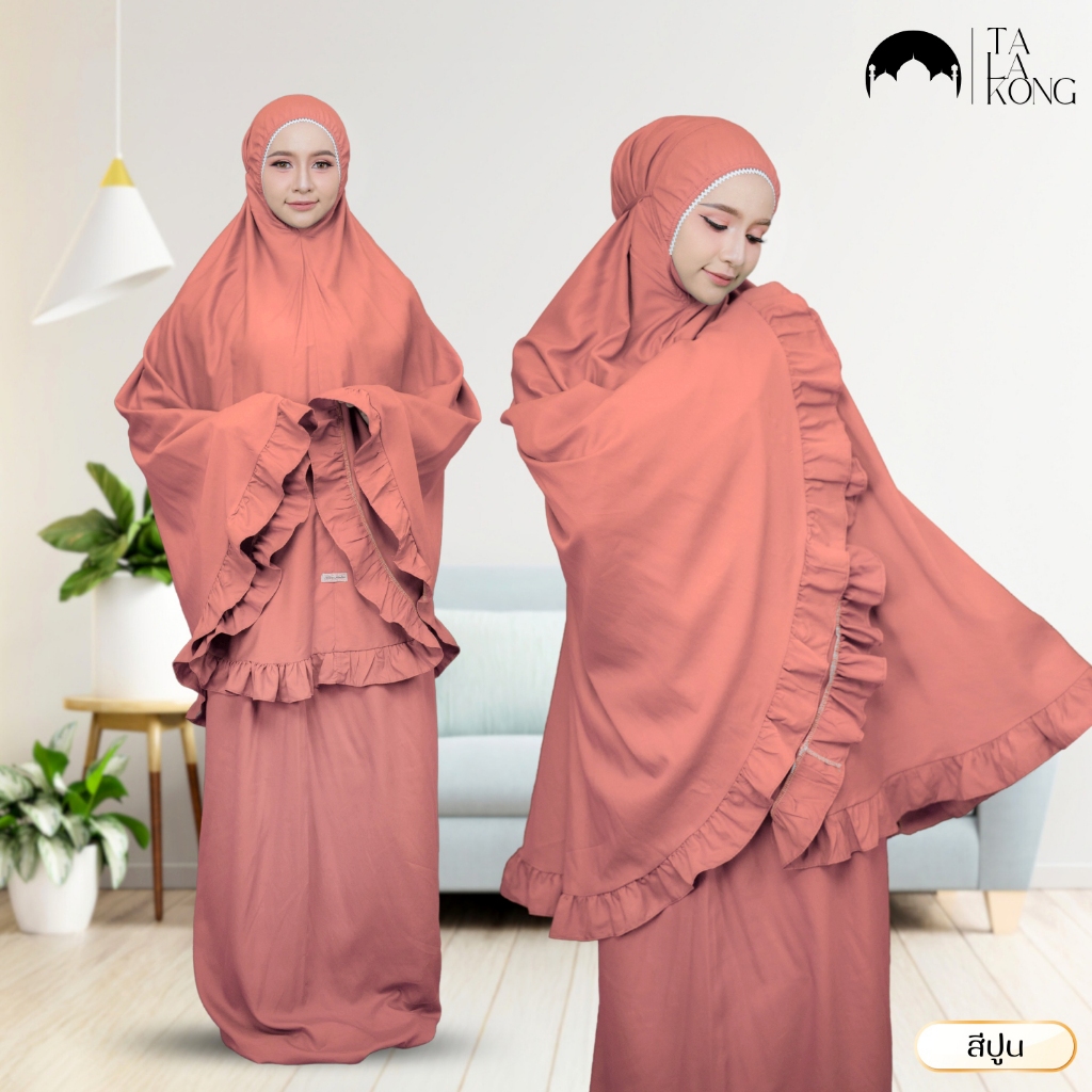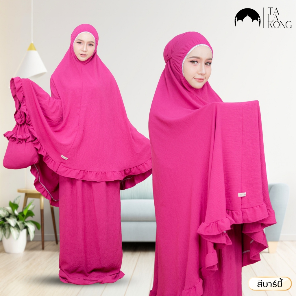 ชุดละหมาด ผ้าตะละกง พร้อมกระเป๋า พกพาสะดวก (คละเฉดสี) (คละผ้า) สีพื้น กรอบหน้ายางยืด TB44วาริสมุสลิม
