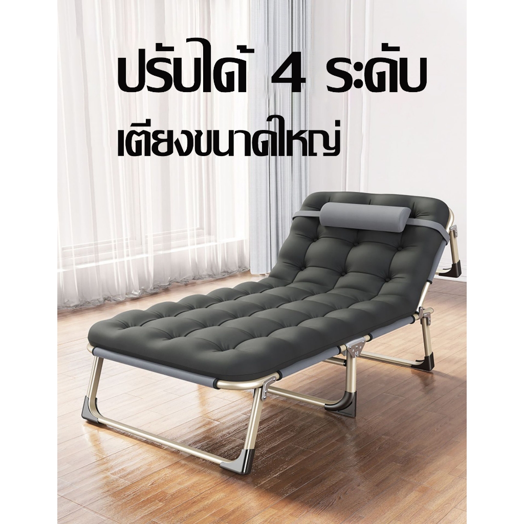 【ปรับพนักพิงได้ 4 ระดับ】ดึงออกมานอนโดยไม่ต้องติดตั้ง เตียงสนามพับเก็บได้ ตียงนอนพับได้ เตียงพับได้ เตียงกว้างขึ้น 75 ซม