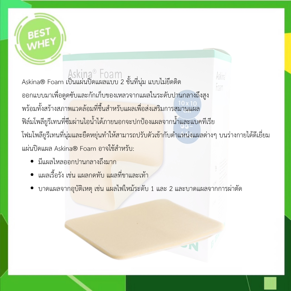 [ แบ่งขาย 1 ชิ้น ] B Braun Askina Foam 10x10CM แผ่นแปะแผลกดทับ ปราศจากเชื้อ [6414]