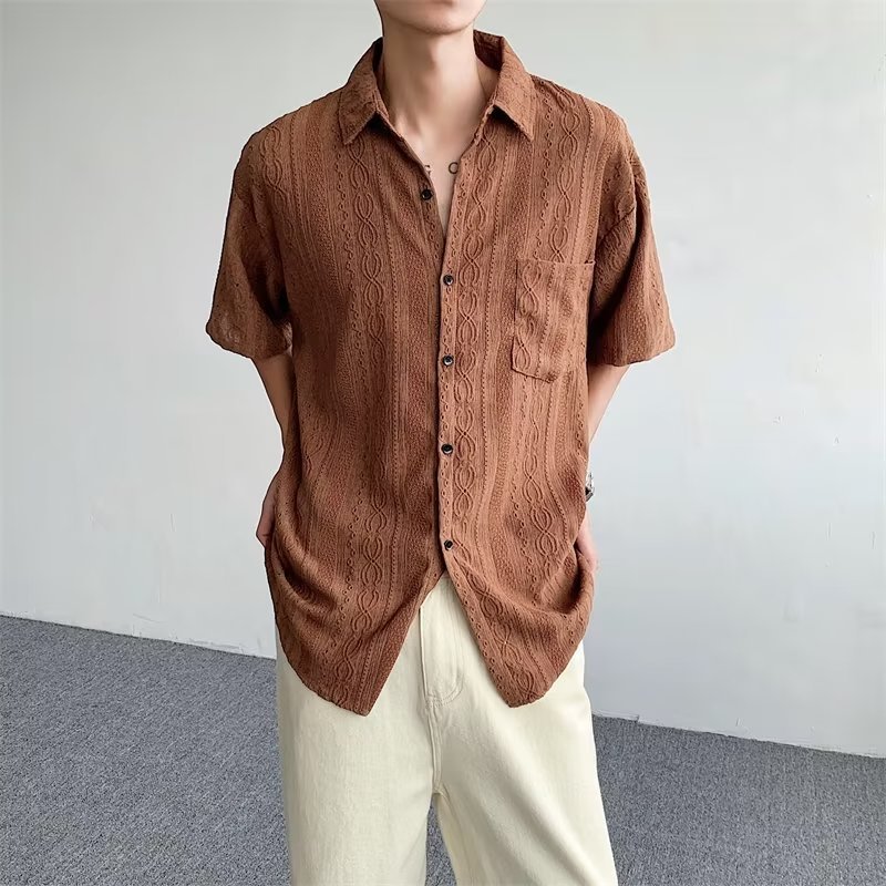 ONE-WE เสื้อเชิ้ต ทรงหลวม สไตล์เกาหลี แฟชั่นฤดูร้อน การออกแบบแกะสลักกลวง เสื้อเชิ้ตใส่สบาย แฟชั่นชาย จัดส่งที่รวดเร็ว