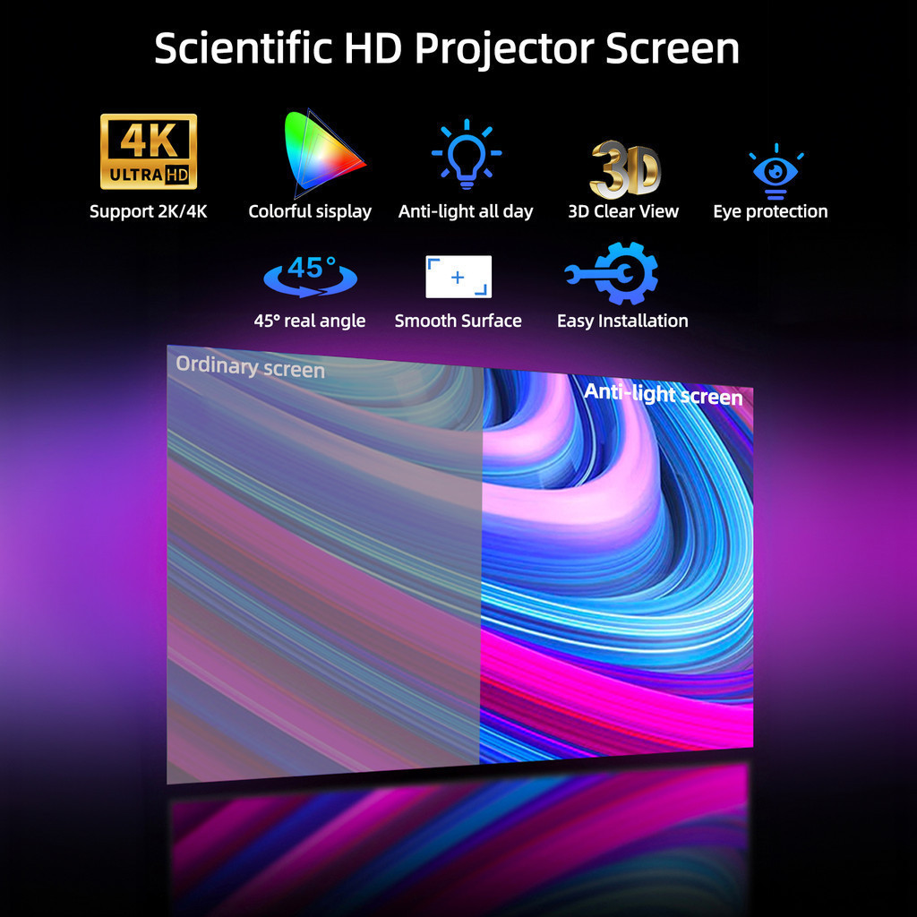 GOOJODOQ High-Contrast HD Anti-Light Projector Screen with 2K/4K Support Anti-Crease Material Eye-Protection