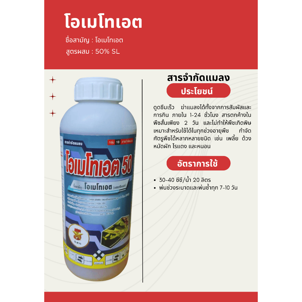 โอเมโทเอต 50% SL [1B] ❄️ สูตรเย็น กำจัด เพลี้ยอ่อน เพลี้ยไฟ แมลงหวี่ขาวหนอนใยผัก ไรแดง