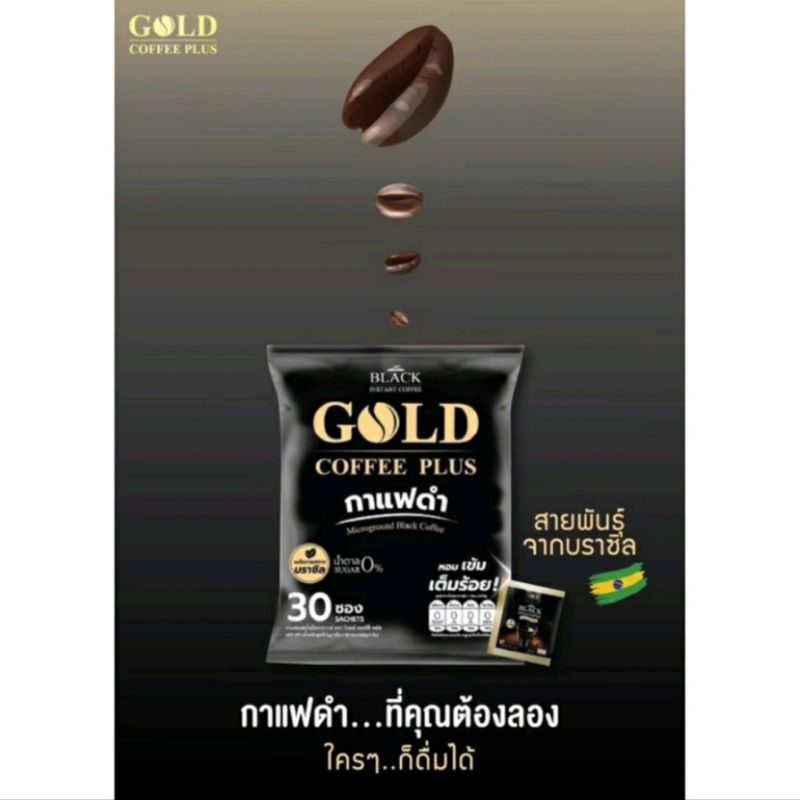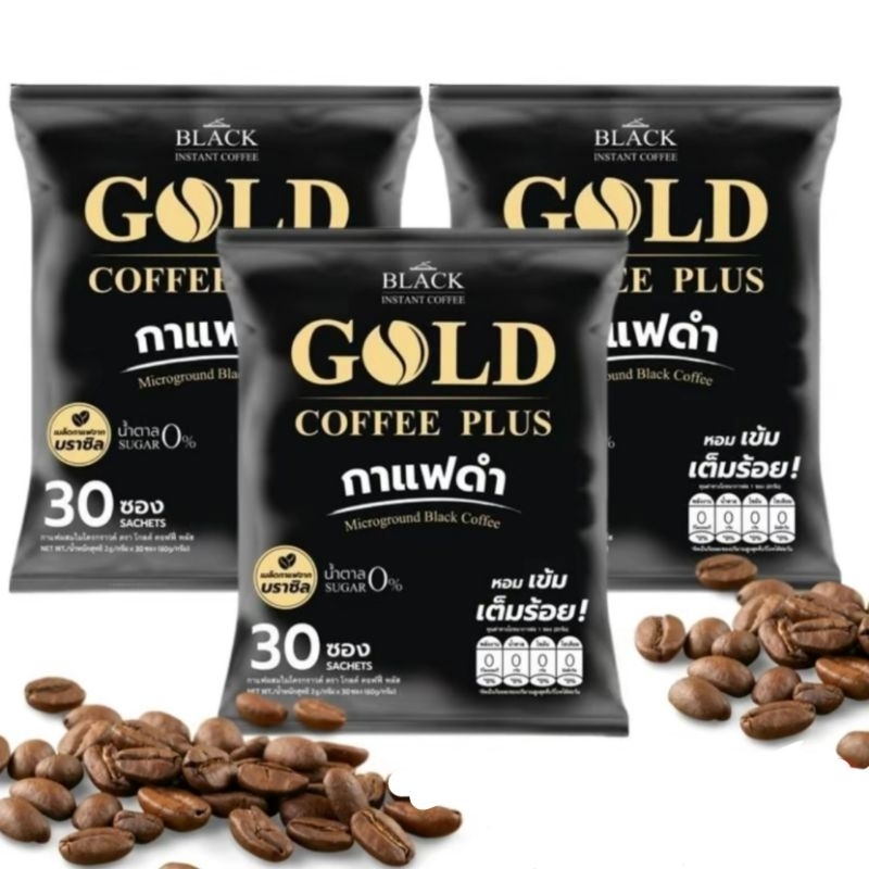 GOLD COFFEE PLUS โกลด์ คอฟฟี่ พลัส กาแฟดำ สายพันธุ์บราซิล ขนาด 2 กรัม ยกแพ็ค 30 ซอง กาแฟเพื่อสุขภาพ น้ำตาล 0% หอม เข้ม