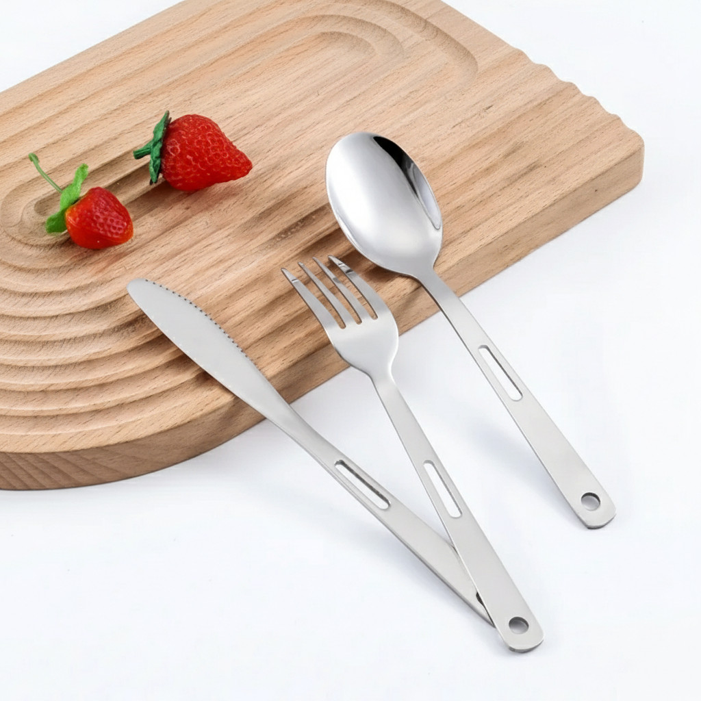 สำหรับแคมป์ปิ้ง ชุด SS ช้อนส้อมมีด สแตนเลส แบบพกพา