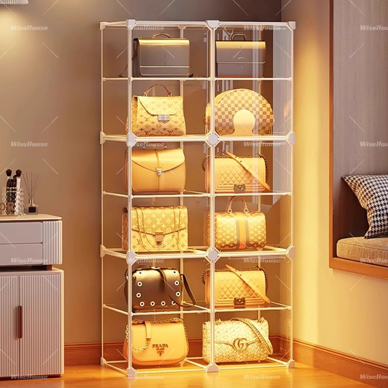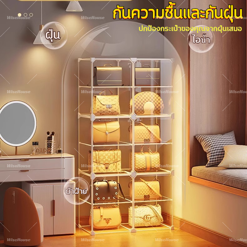 WISE ตู้โชว์กล่องแสดงโปร่งใส ตู้เก็บกระเป๋า 4/6/8 ชั้น กล่องโชว์กระเป๋า แสดงผลกันฝุ่นตู้เก็บของ แข็งแรงทนทาน