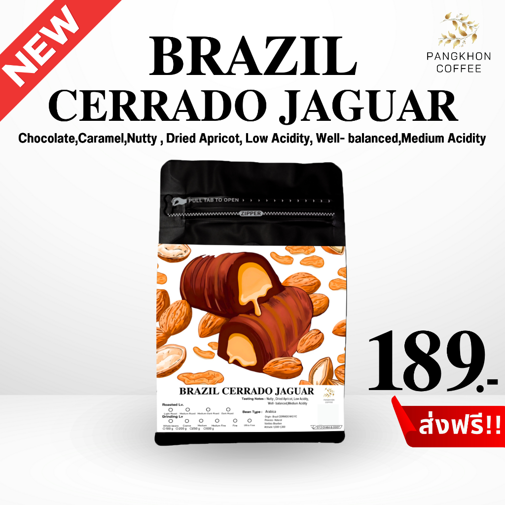 เมล็ดกาแฟคั่ว Brazil Cerrado Jaguar จาก Pangkhon Coffee Roaster