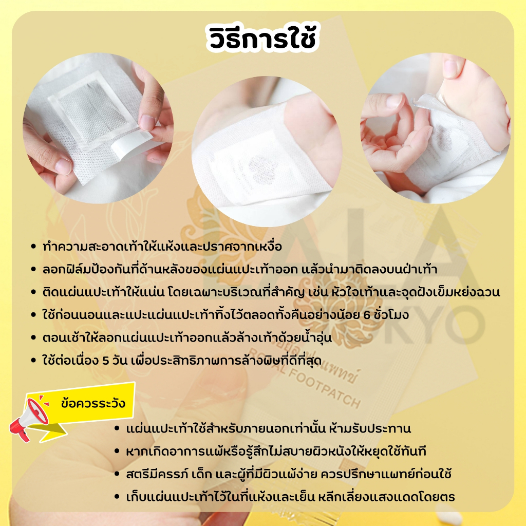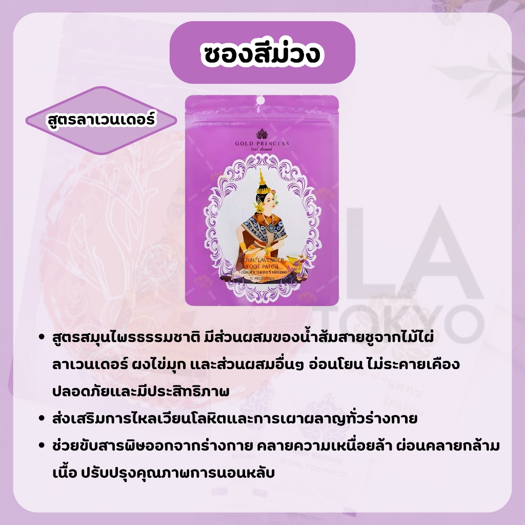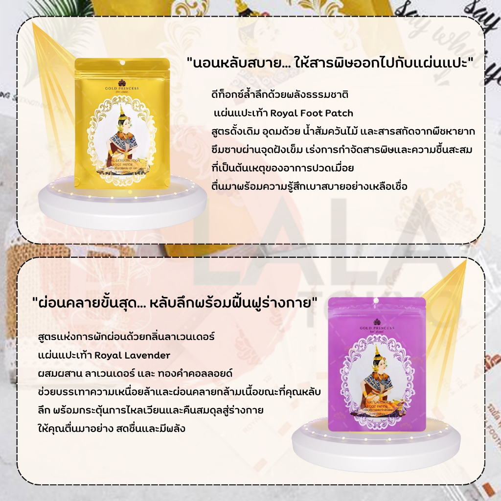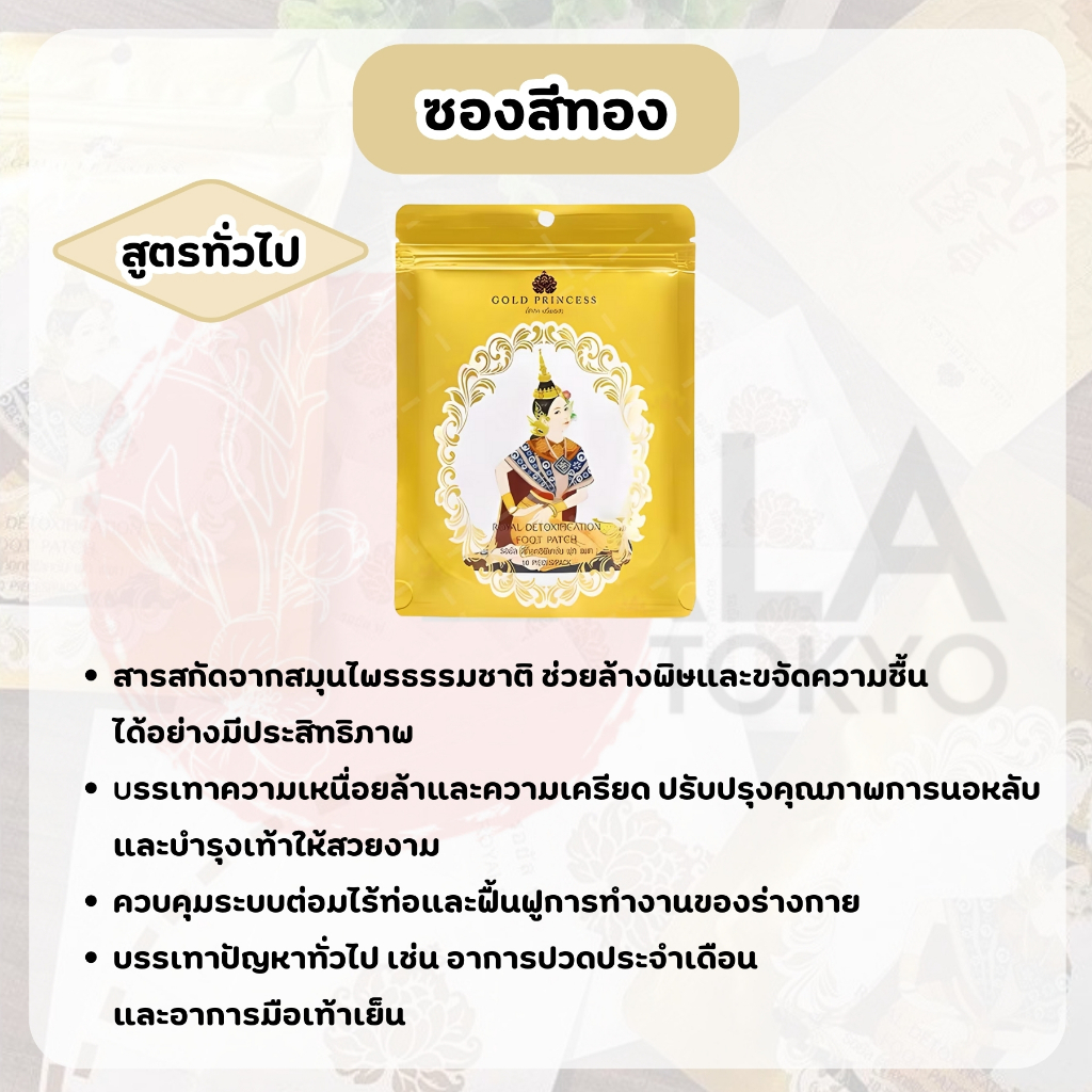 ROYAL DETOXIFICATION FOOT PATCH โกล์ดปริ้นเซส แผ่นแปะเท้านางรำ1ซอง10แผ่น เพื่อสุขภาพที่ดี