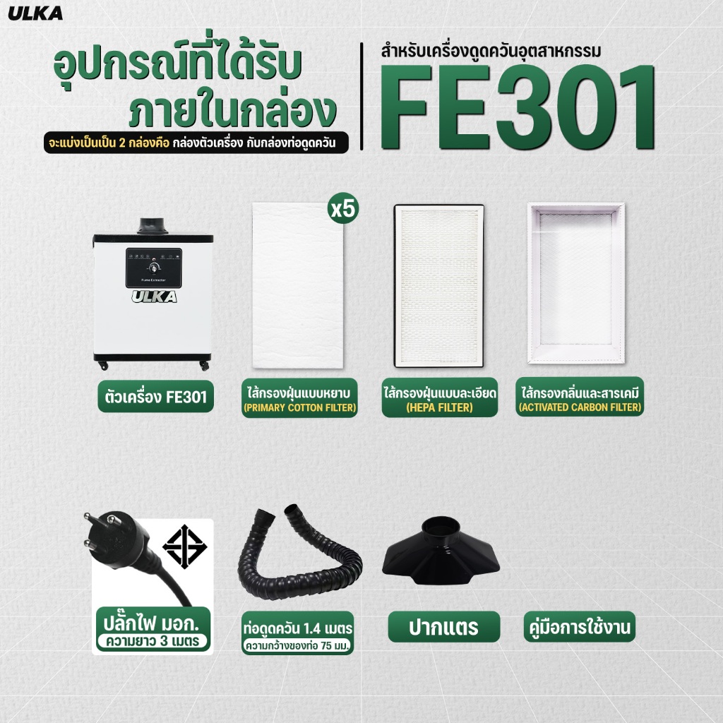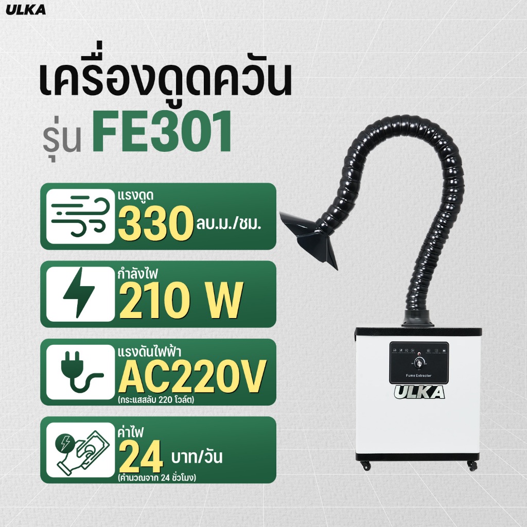 ULKA เครื่องดูดควันอุตสาหกรรม รุ่น ULKA FE301 หัวเดียว ใช้งานง่าย งานบัดกรี งานเชื่อม ดูดควัน ฝุ่น กลิ่น