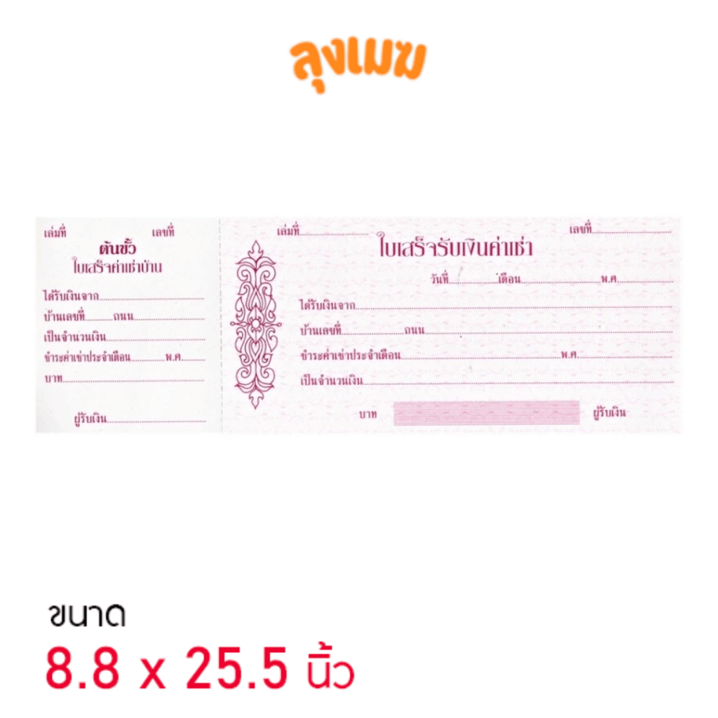ใบเสร็จรับเงินค่าเช่า ขนาด 8.8 x 25.5 ซม. (จำนวน 24 แผ่น)