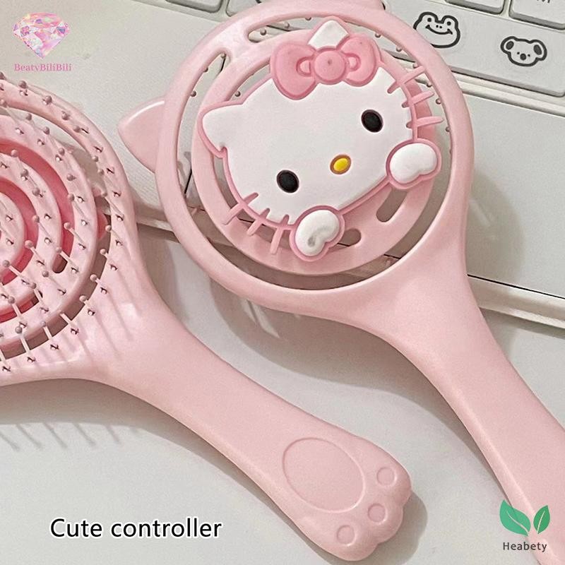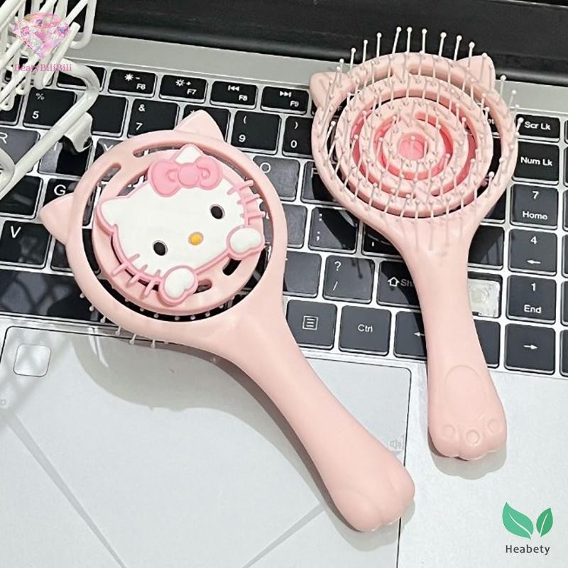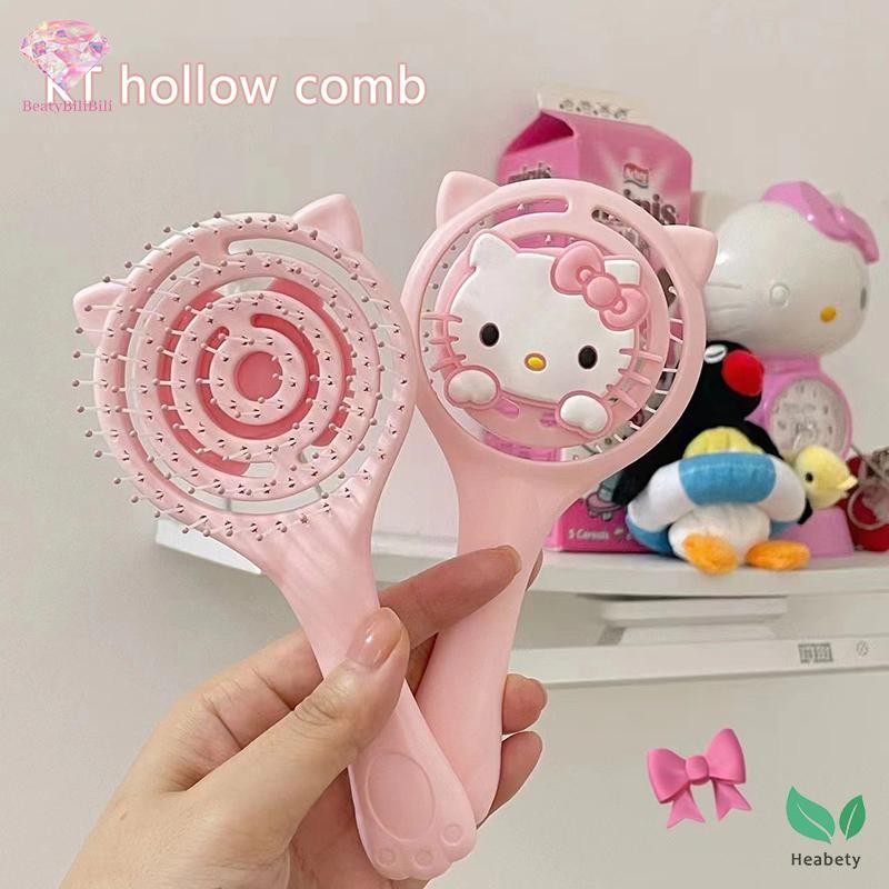 Heabety หวีแบบพกพา Fluffy Hollow Out แปรงผมมือถือนวดผมสีชมพูแต่งหน้าเครื่องมือจัดแต่งทรงผมใหม่