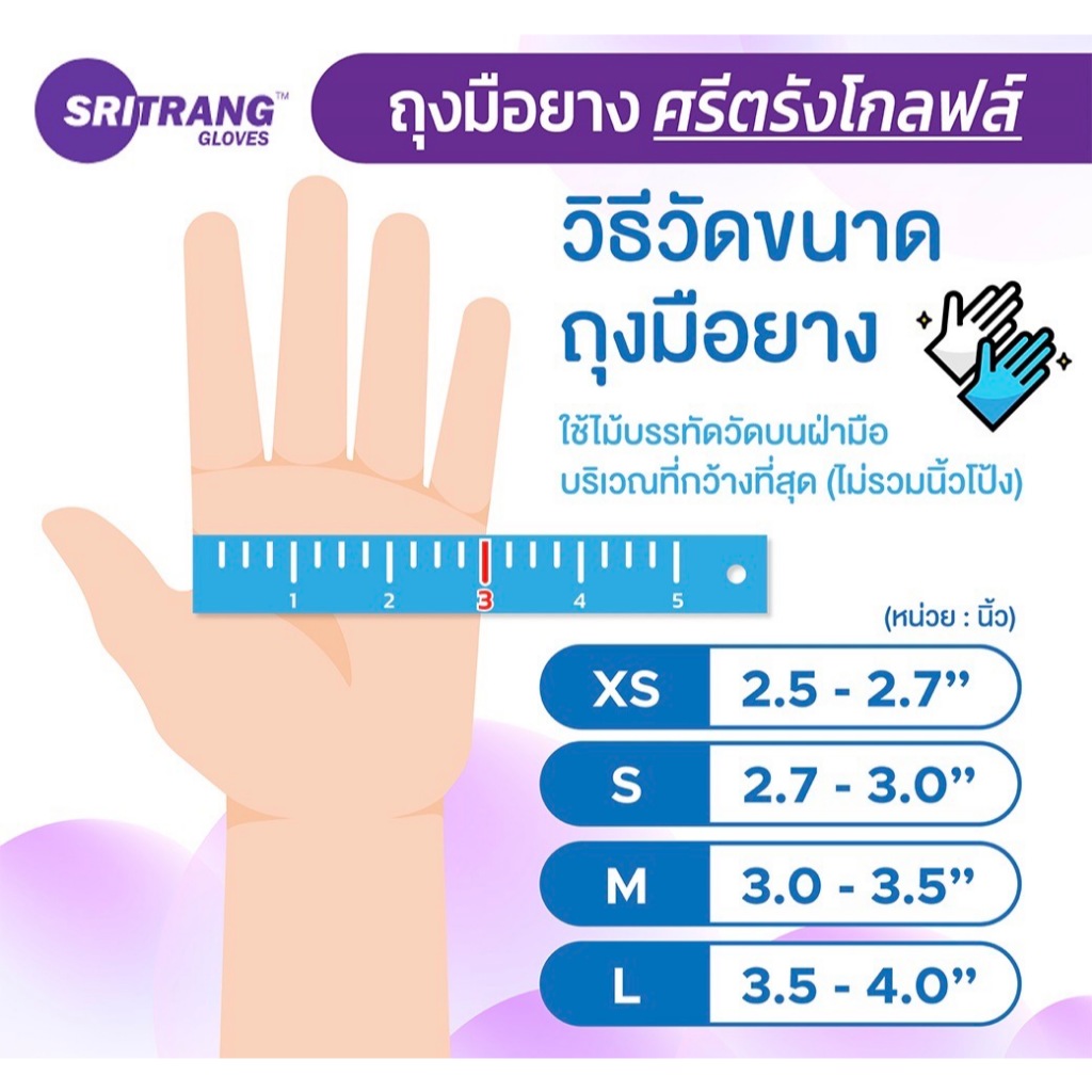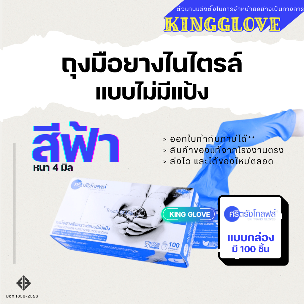 ตัวแทนแต่งตั้งจากโรงงาน || ถุงมือไนไตรล์ สีฟ้าเข้ม แบบไม่มีแป้ง ศรีตรังโกลฟส์ (Sri trang gloves) กล่องสีฟ้าเข้ม (4 mil.)