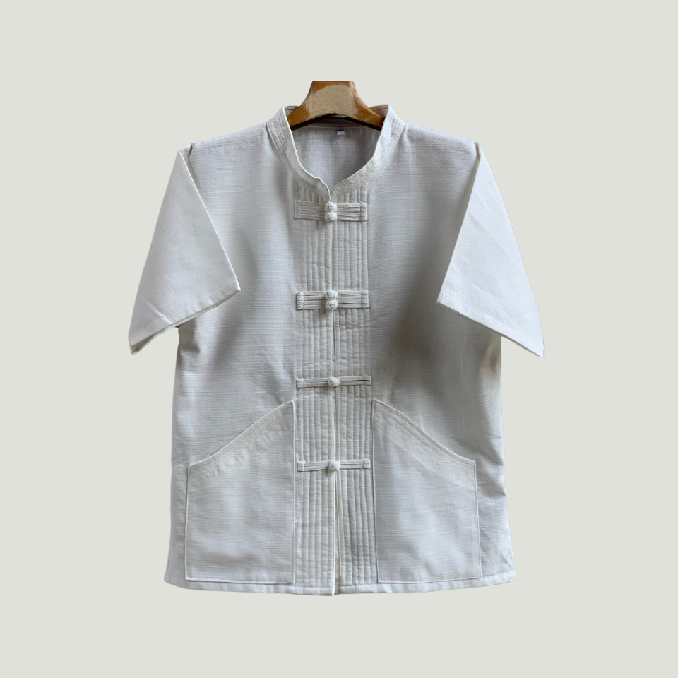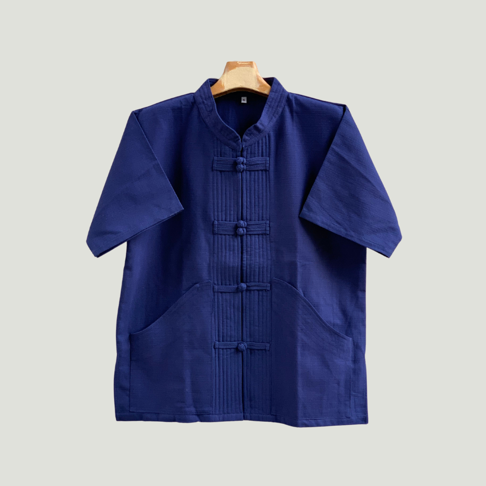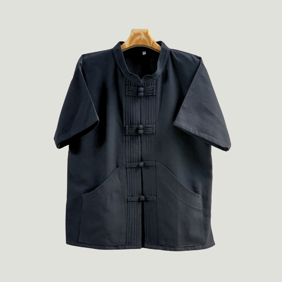 เสื้อผ้าฝ้ายคอจีน ไทเขินแขนสั้นกระดุมจีน สไตล์ล้านนา ทรงตรงสวมใส่สบายเนื้อนุ่มมือ ใส่ทำงานดูเรียบร้อยดูดีทุกมุมมอง