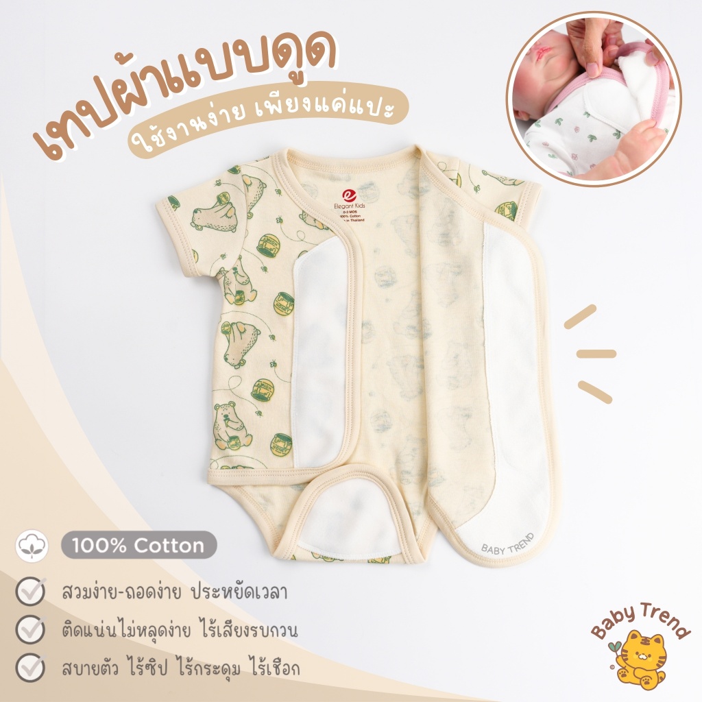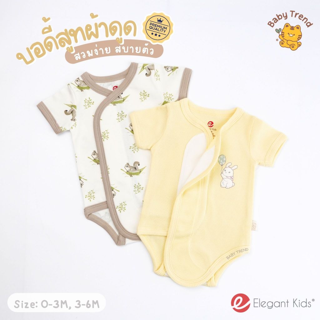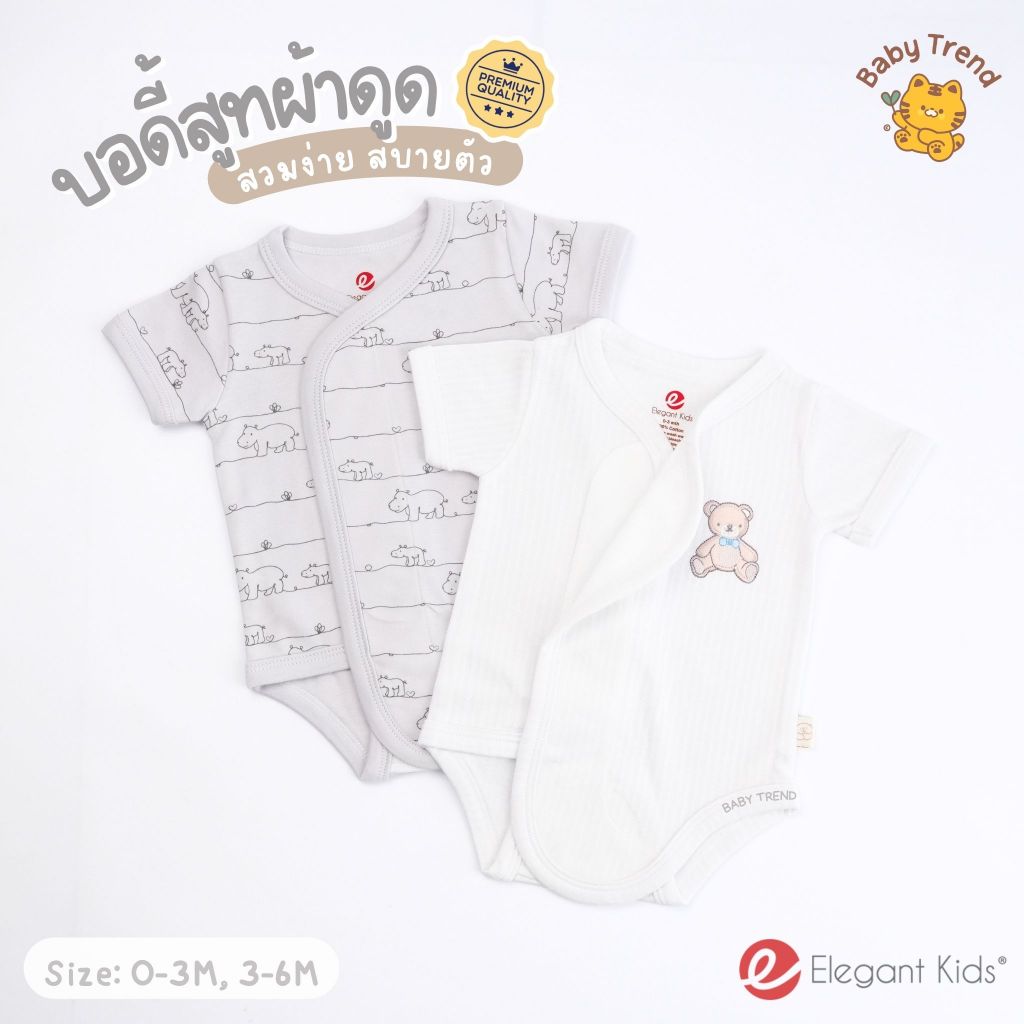Elegant Kids บอดี้สูทผ้าดูด ชุดผ้าแปะเด็กแรกเกิด 0-6 เดือน ผ้าคอตตอน สวมง่าย ใส่สบาย