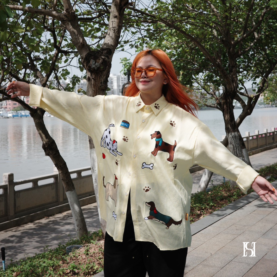 ✅ พร้อมส่ง 👈 HUEGAH PAW Shirt เสื้อเชิ๊ตแขนยาว ปักลาย ไซซ์ใหญ่