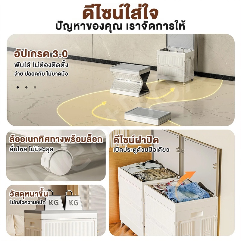 NeatBox กล่องเก็บของพับได้ 150L กล่องพลาสติกมีฝาปิด มีล้อ เก็บของอเนกประสงค์ วางซ้อนกันได้ กล่องเก็บของเก็บเสื้อผ้า