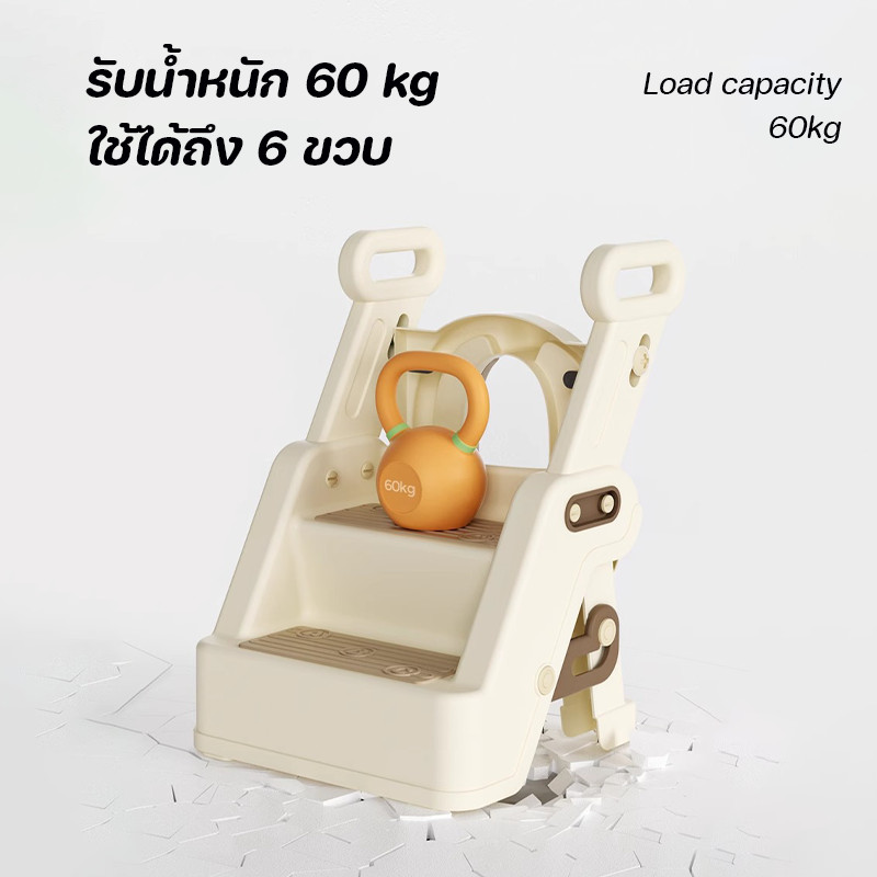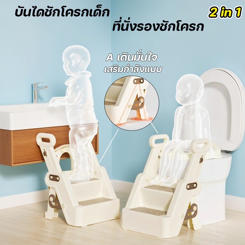 COD บันไดชักโครกเด็ก ที่นั่งรองชักโครก 2 in 1 กันลื่น รับน้ำหนัก 60kg เบาะ PU แบบพับเก็บ ขนาดเด็ก