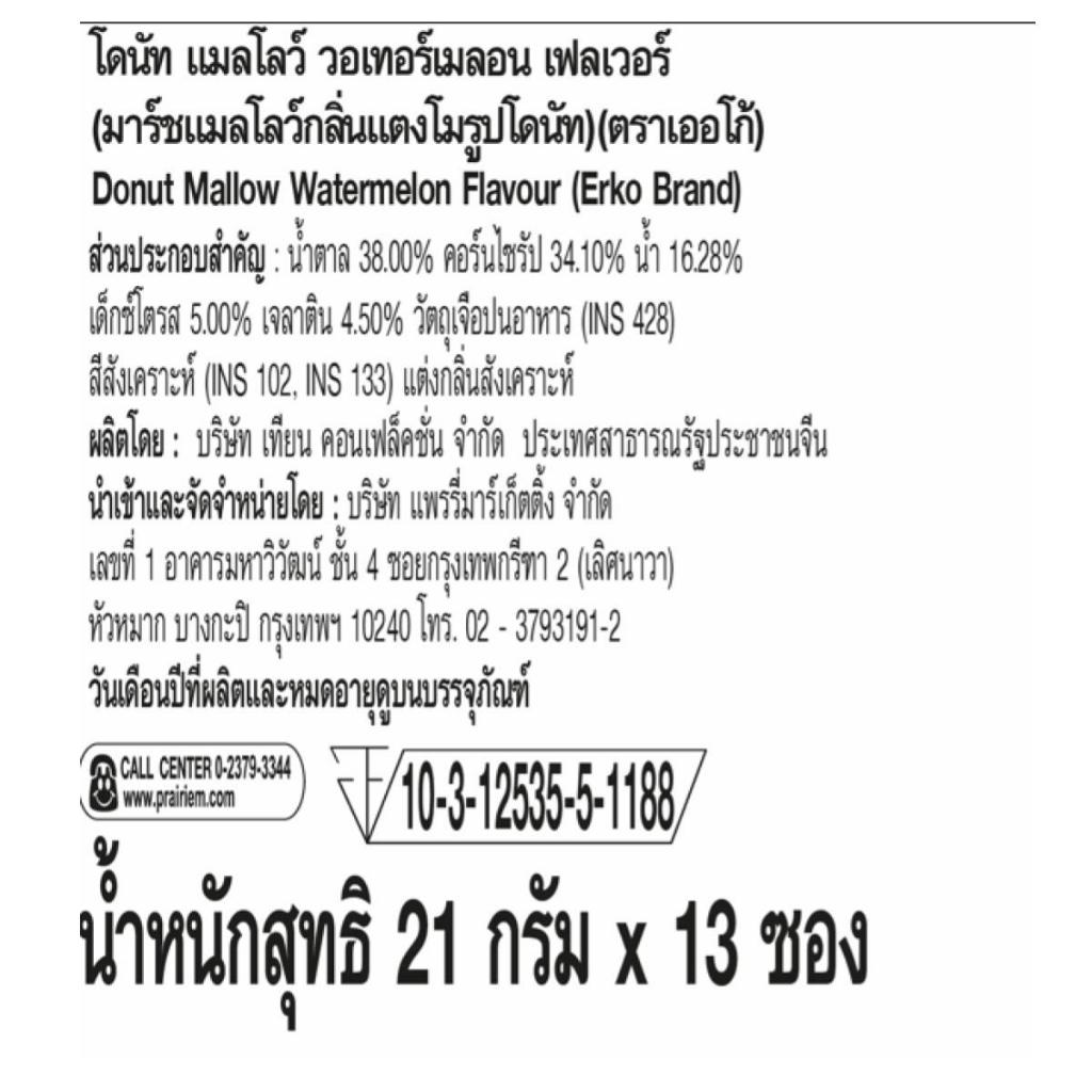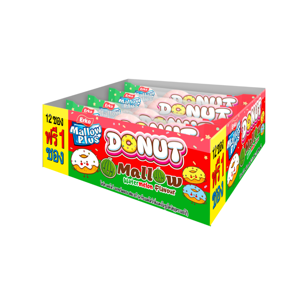 เออโก้ โดนัท แมลโลว์ วอเทอร์เมลอน เฟลเวอร์ 21 กรัม x 12 +1 ชิ้น / Erko Donut Mallow Watermelon Flavour 21g. x 12 +1 Pcs