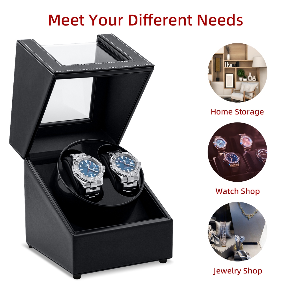 【การจัดส่งในประเทศไทย】Automatic Dual Watch Winder,เครื่องไขลานนาฬิกาคู่แบบอัตโนมัติ, กล่องไขลานนาฬิกาสำหรับผู้ชายและผู้หญิง, กล่องเก็บนาฬิกาพร้อมอินเทอร์เฟซพลังงาน USB สากล (หนัง PU หรือคาร์บอนไฟเบอร์)