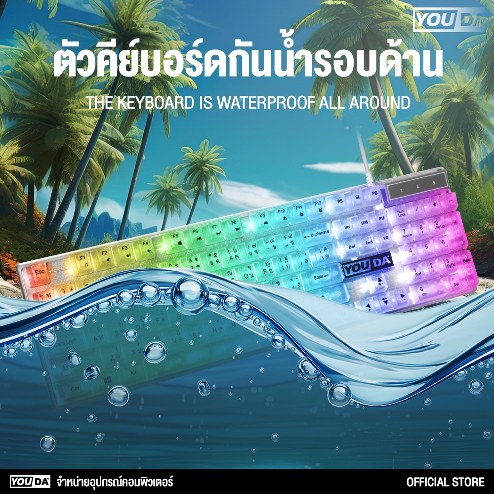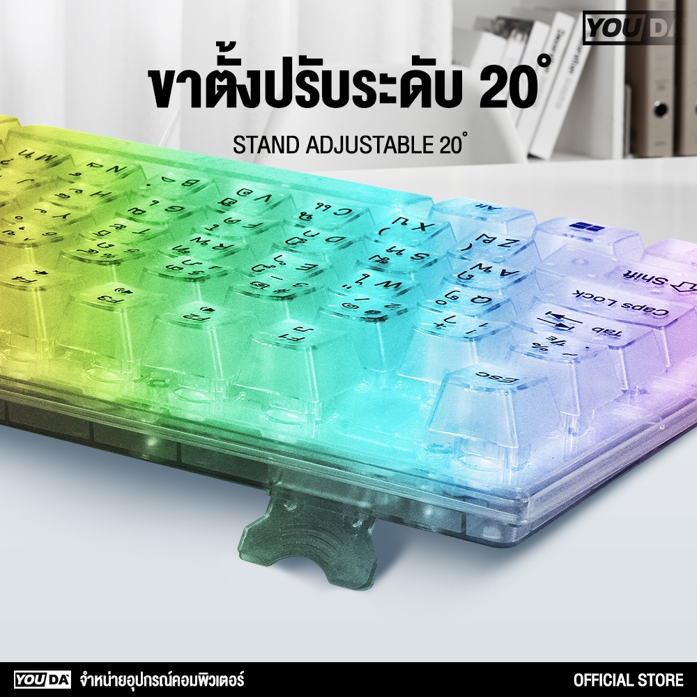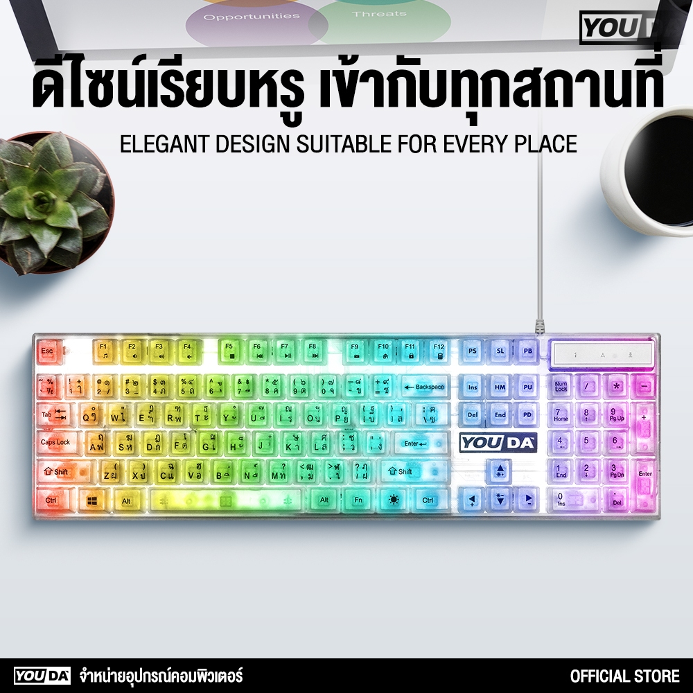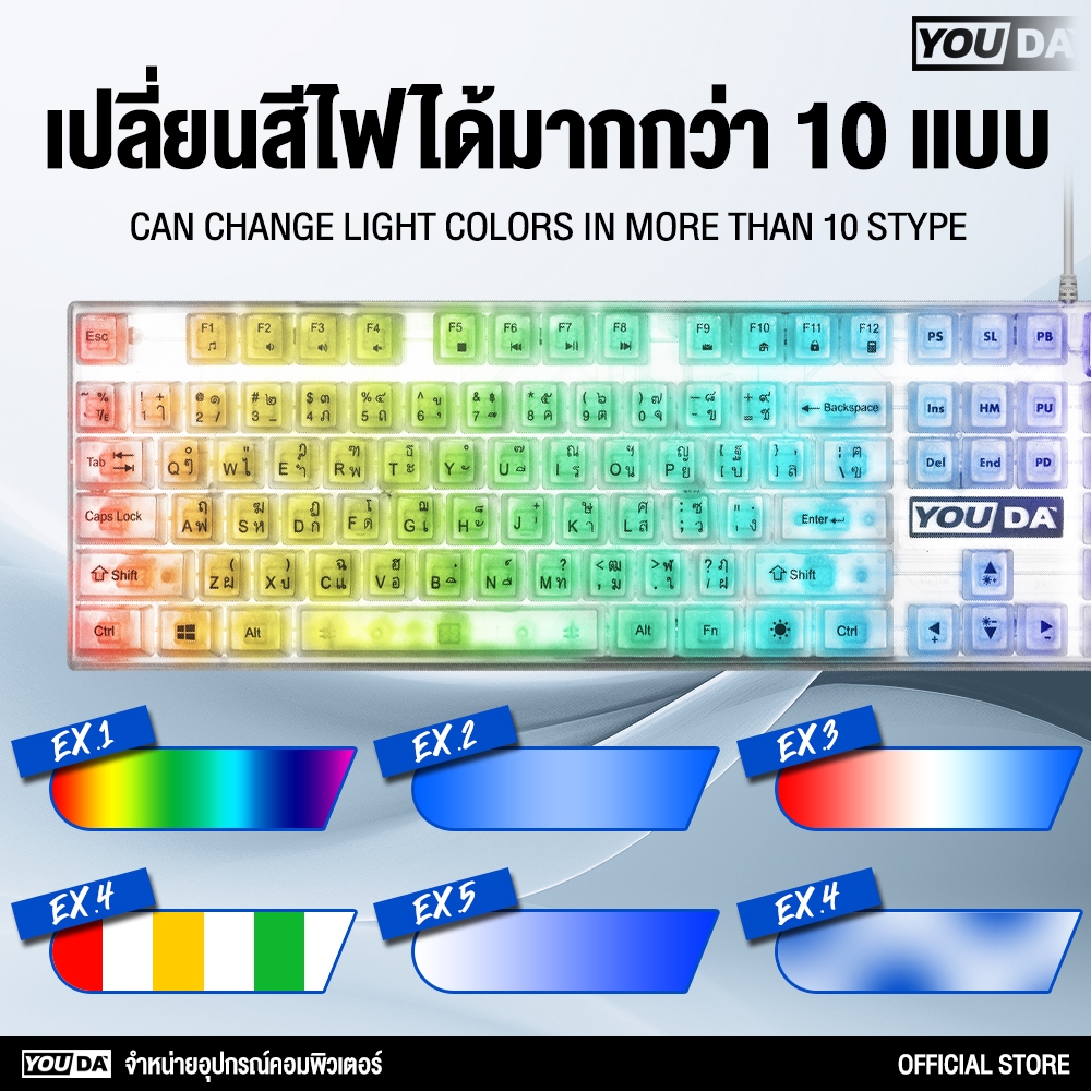 คีย์บอร์ดเกมมิ่ง LED แป้นใส เปลี่ยนสีไฟได้12แบบ YD-K600 มีภาษาไทยและภาษาอังกฤษ