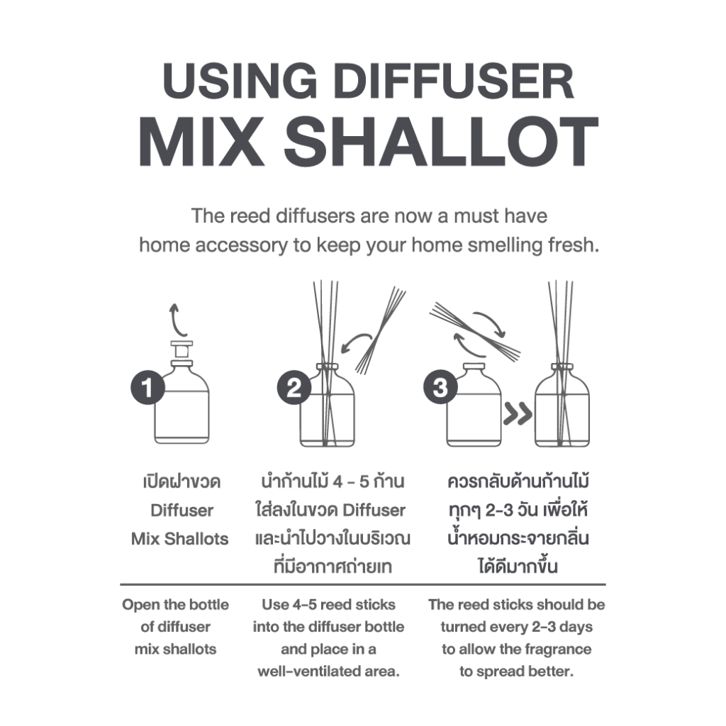 ก้านไม้หอม x หอมแดงสกัด (กลิ่นตะไคร้) 100ml 🍃ปรับอากาศโอบอวล🍃 Reed Diffuser Mix Shallot Extract