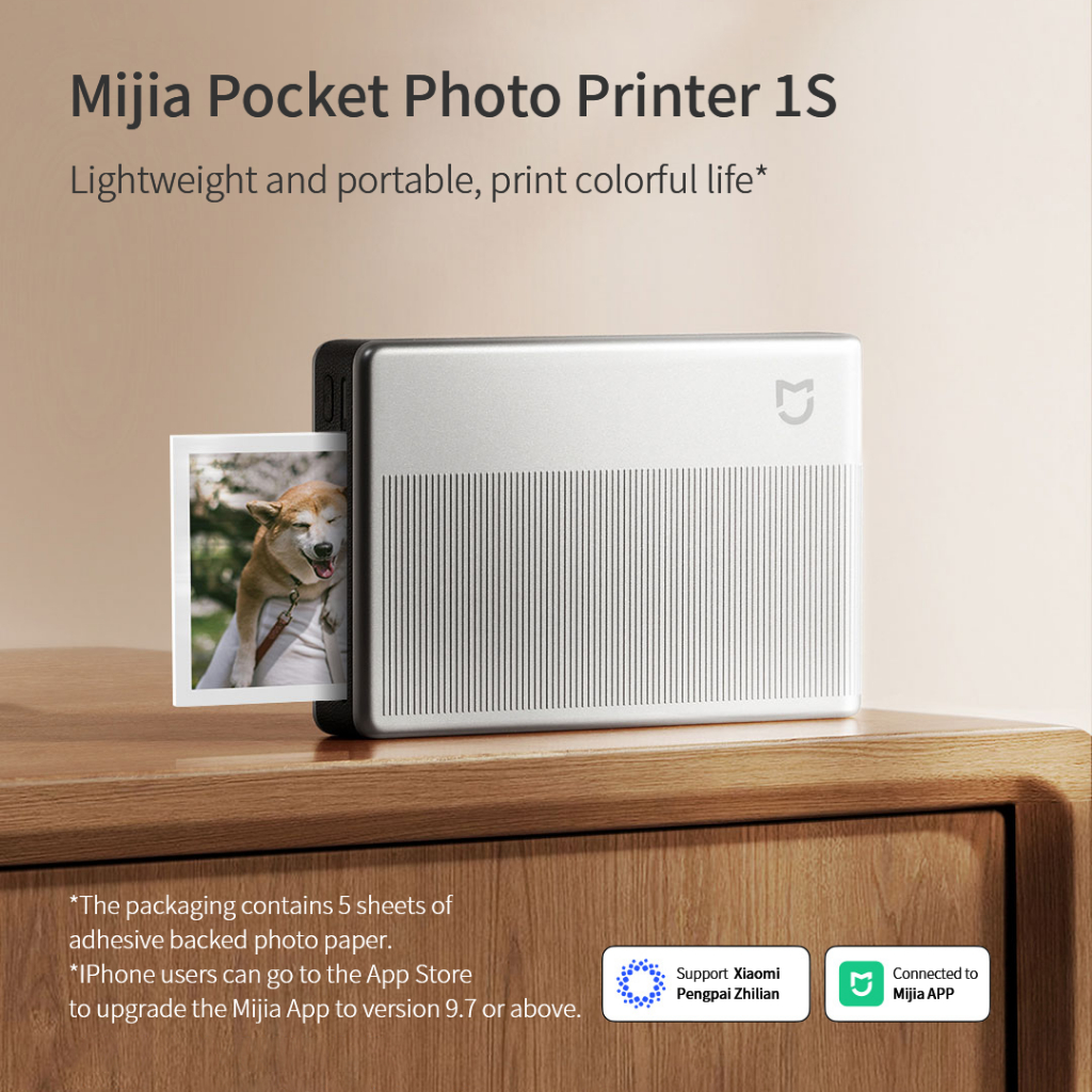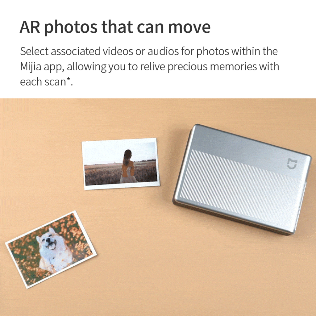 Mijia เครื่องพิมพ์ภาพพกพา 1S ภาพสีสันสดใสรองรับวิดีโอ AR, การแชร์การเชื่อมต่อหลายคน, เครื่องหมายน้ําชายแดนแบบกําหนดเองทํางานร่วมกับแอพ Mijia