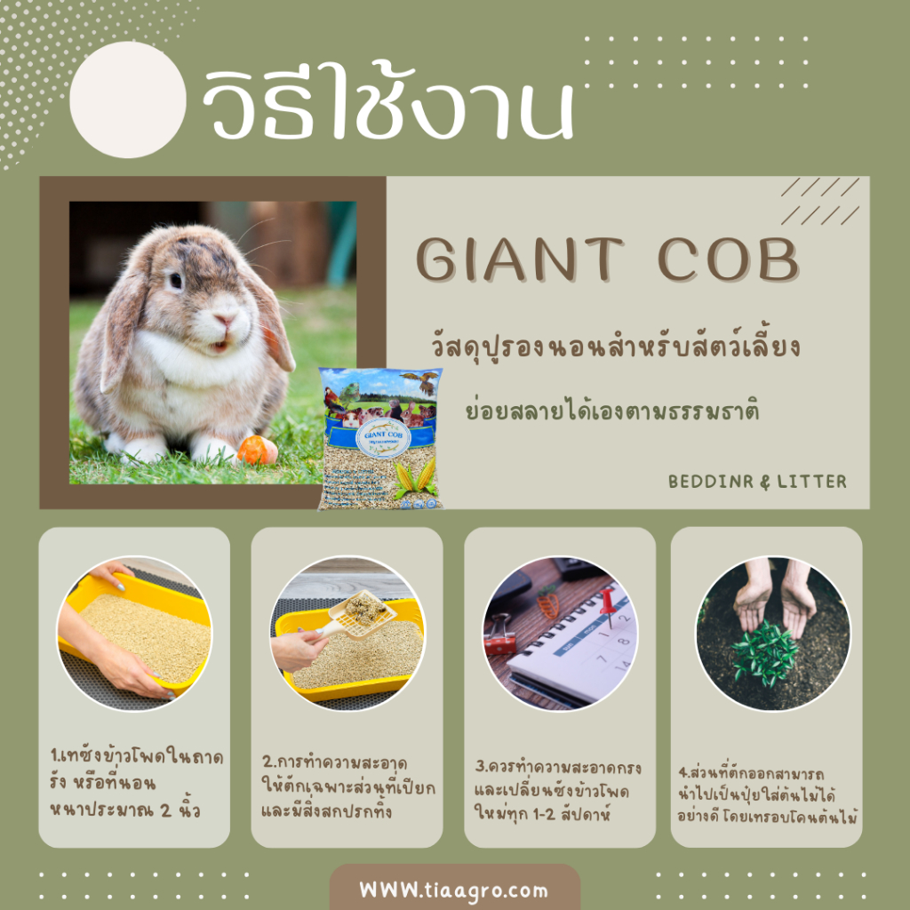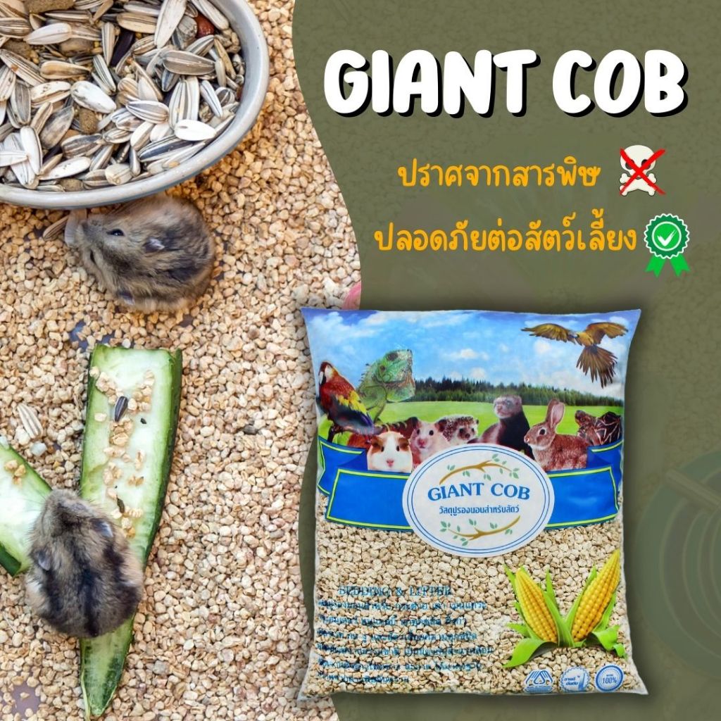 ซังข้าวโพดบด GIANT COB วัสดุรองนอนสำหรับสัตว์เลี้ยง หนูแฮมเตอร์ หนูแกสบี้ เม่นแคระ กิ้งก่า (1kg)