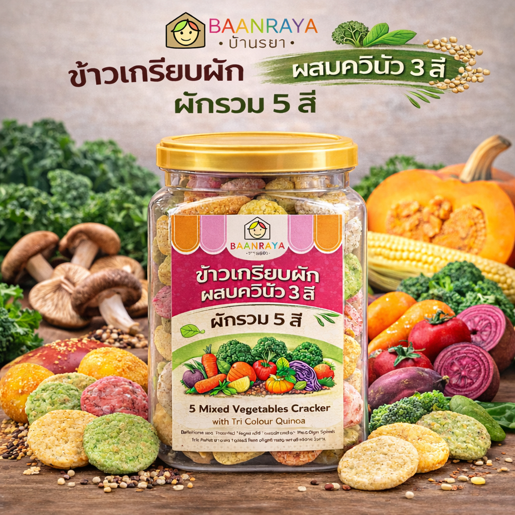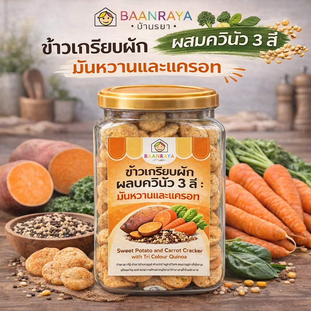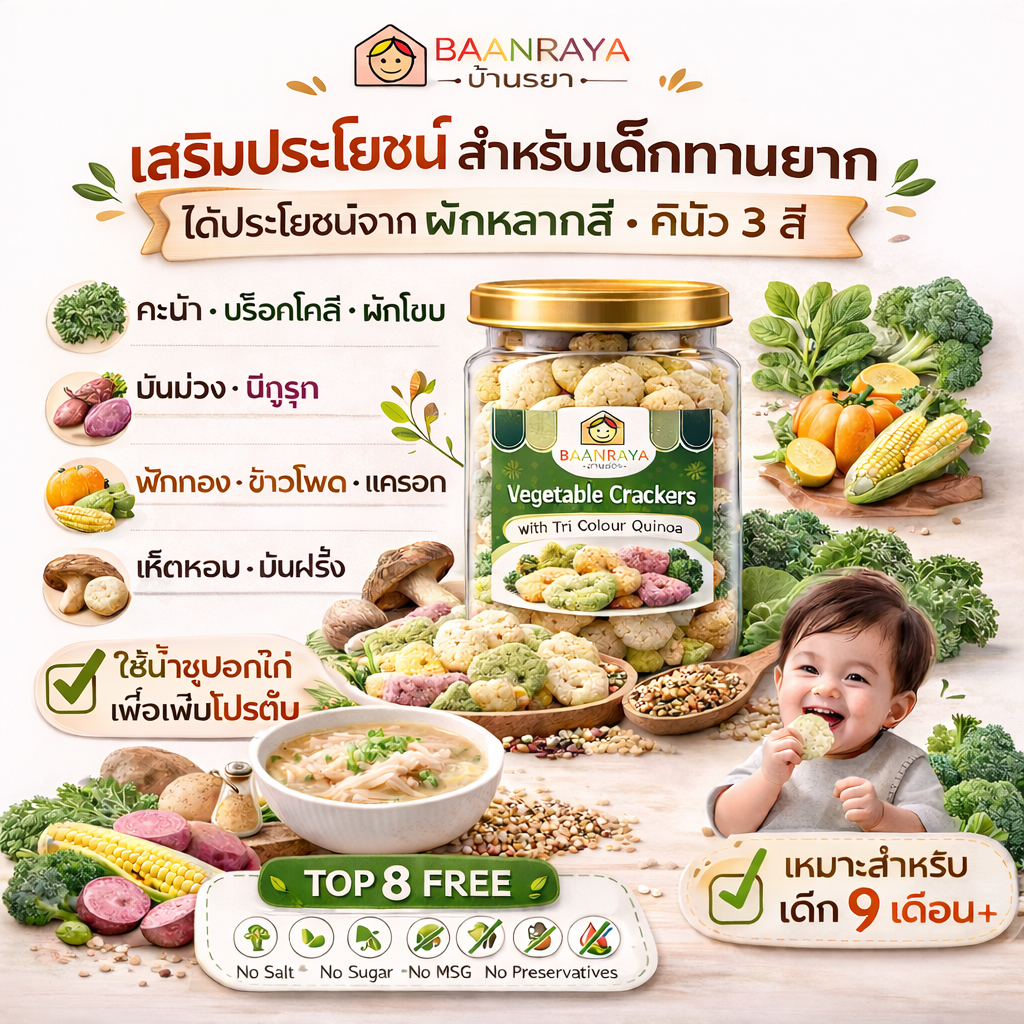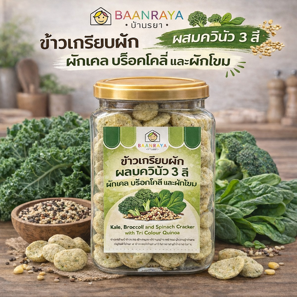 🔥*Promotion*🔥ข้าวเกรียบผัก ผสมควินัว 3 สี บ้านรยา | ขนมเด็กไม่ปรุงรส ไม่ใส่เกลือ น้ำตาล | Top 8 Free | 9m+