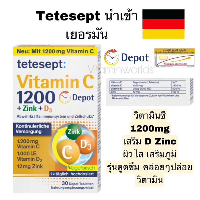 Tetesept Vitamin C 1200 mg เยอรมันสูตร แตกตัวตลอดวัน 30วัน