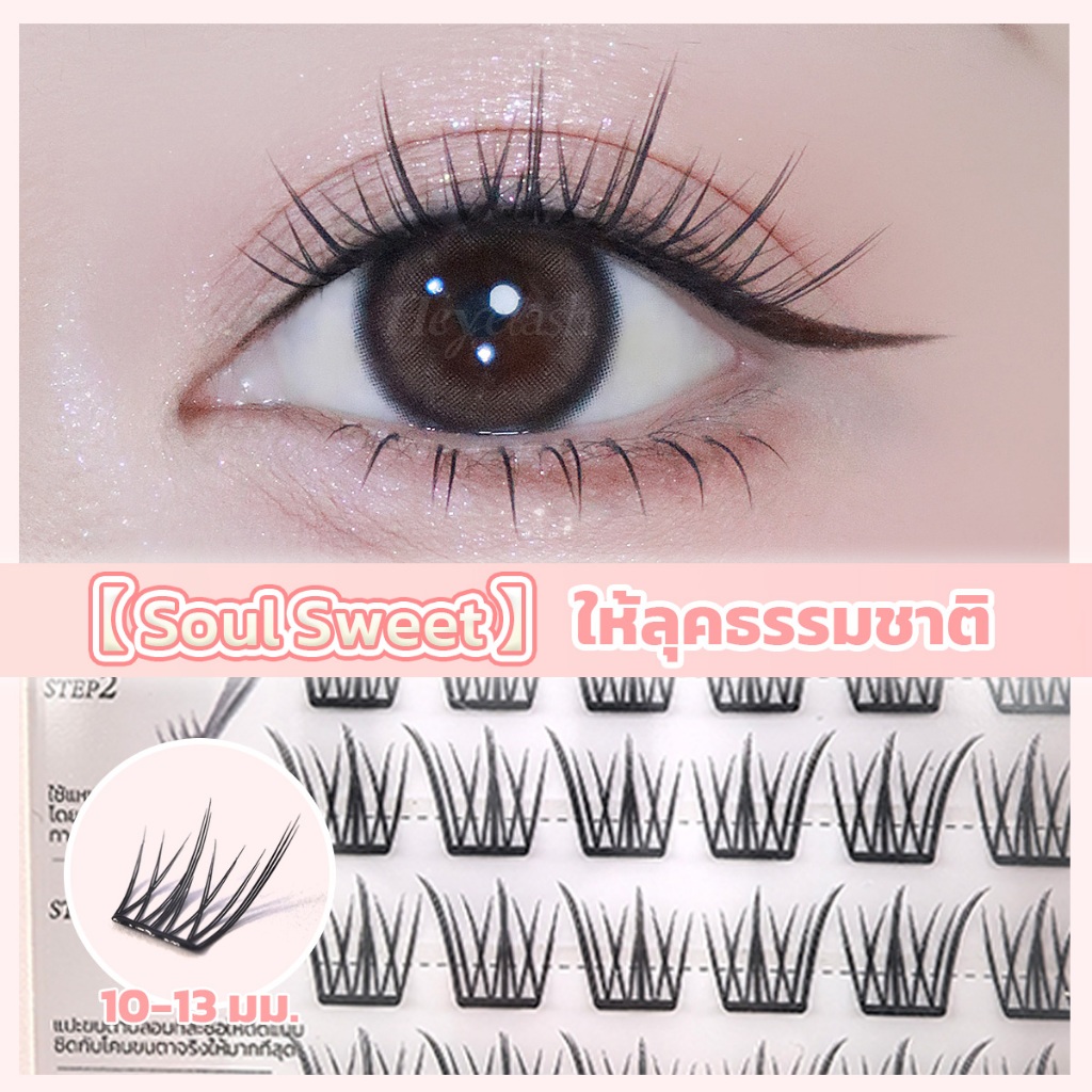【ส่งด่วนจาก กทม.】#SoulSweet ขนตาปลอมแบบช่อพร้อมกาว 10-13 มม. เบาบางพิเศษ HeyeLash ติดได้เลยไม่ง้อกาว