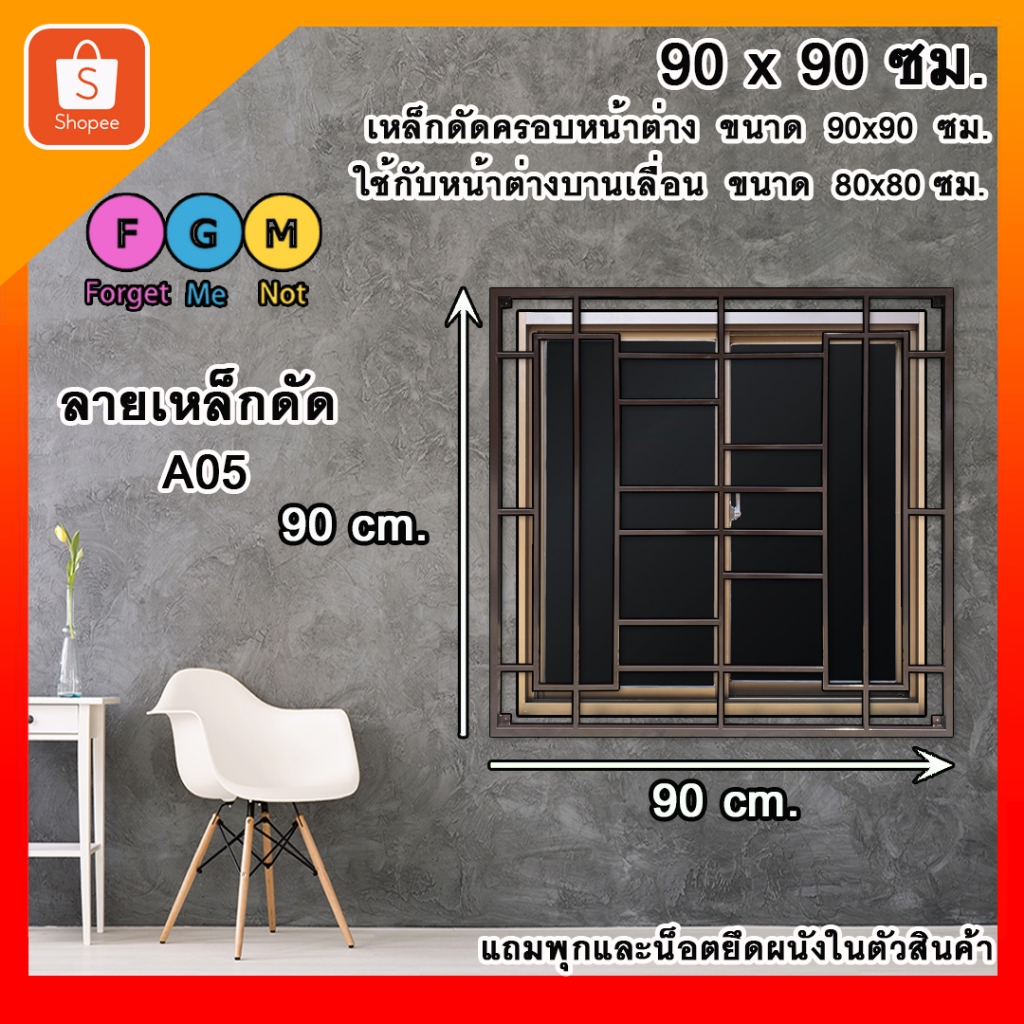 เหล็กดัดครอบนอกสีชา 90x90 ซม. เหล็กดัดหน้าต่าง เหล็กดัดกันขโมย เหล็กดัดสำเร็จรูป FGM