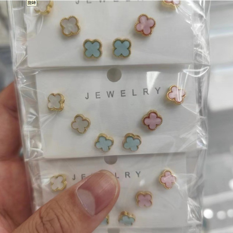 3 คู่ต่างหูโคลเวอร์สี่ใบชุดสาวแฟชั่นต่างหูเครื่องประดับของขวัญวันเกิด