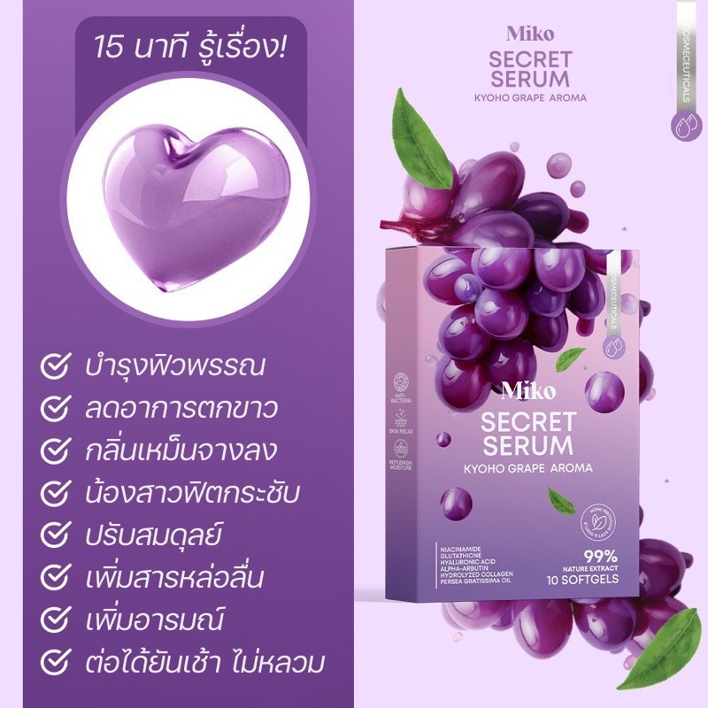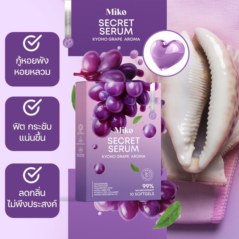 มิโกะ เซรั่ม MIKO Secret Serum ตัวช่วยดูแลน้องสาว กลิ่นองุ่นเคียวโฮ 1 กล่อง บรรจุ 10 ซอฟเจล