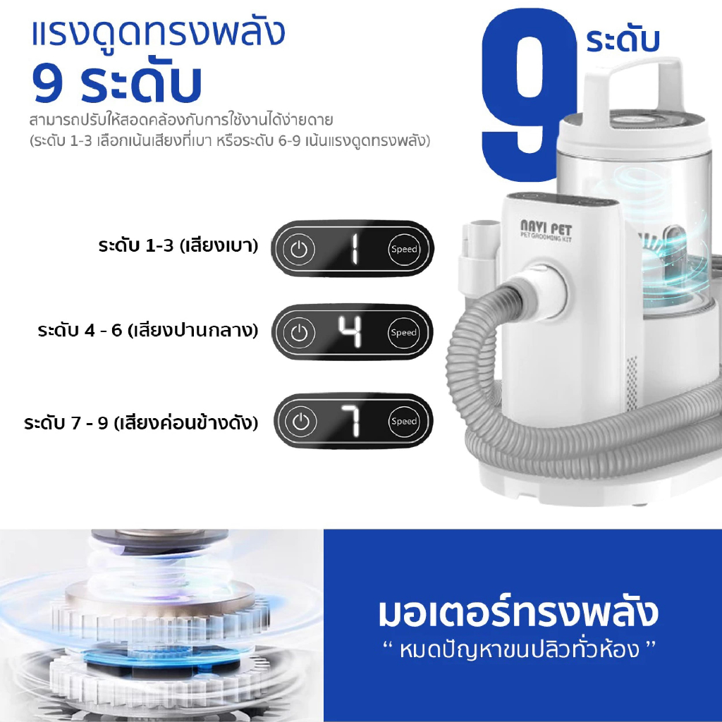 Navi Pet KIT2 Grooming Vacuum White ชุดเครื่องตัดแต่งขนสัตว์เลี้ยง 5 in 1