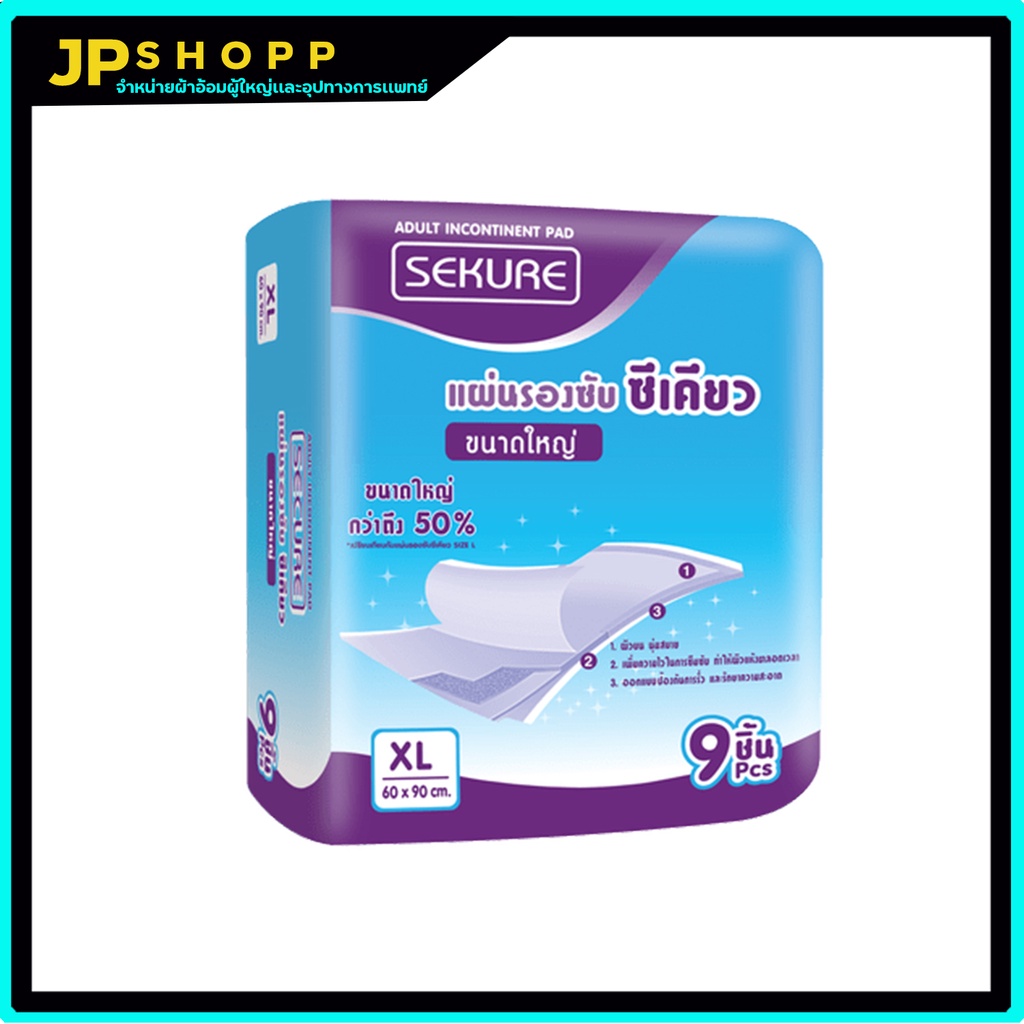 แผ่นรองซับซีเคียว แผ่นรองซับผู้ใหญ่ SEKURE ไซส์ XL 9 ชิ้น (ยกลัง x12 ห่อ)