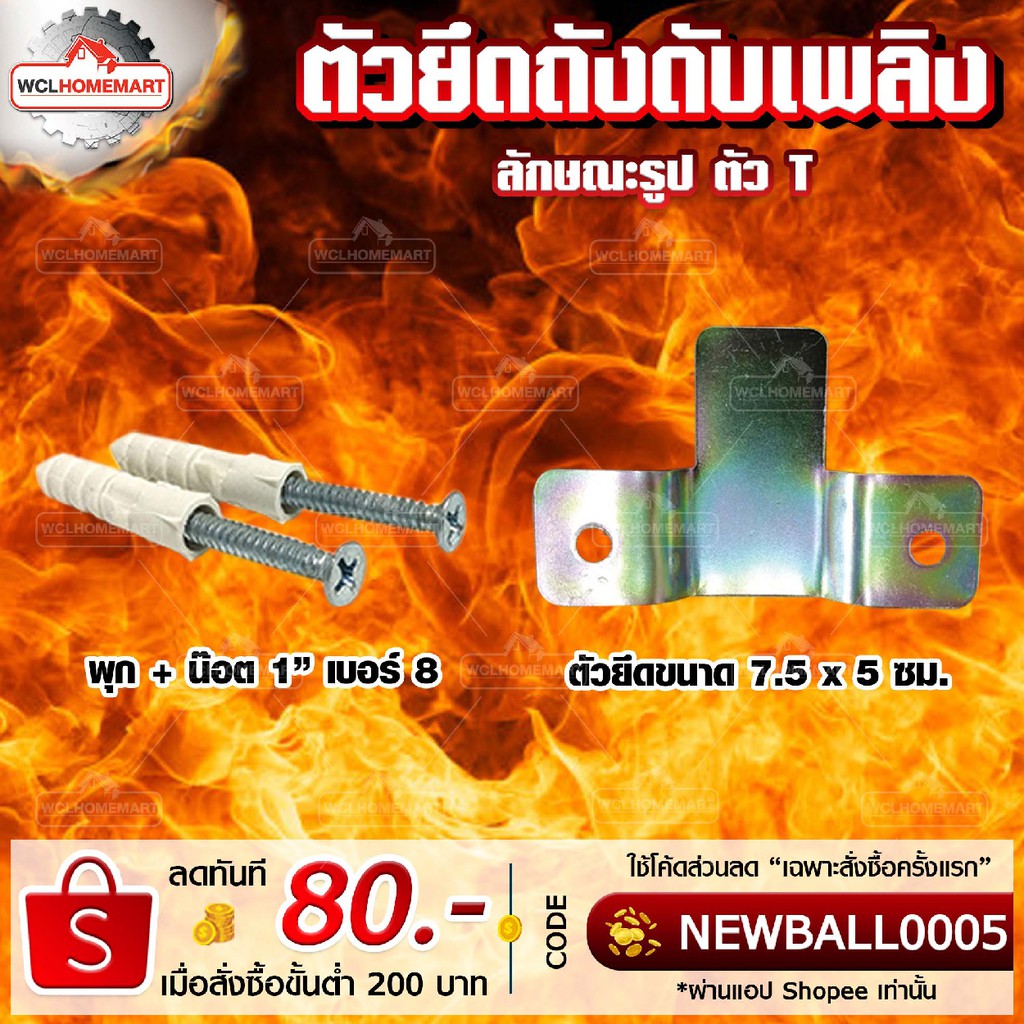 Fireman ที่ยึดถังดับเพลิงรูปตัว T ใช้กับถังดับเพลิง เคมีแห้ง (แถม น๊อต1นิ้วเบอร์8+พุก)