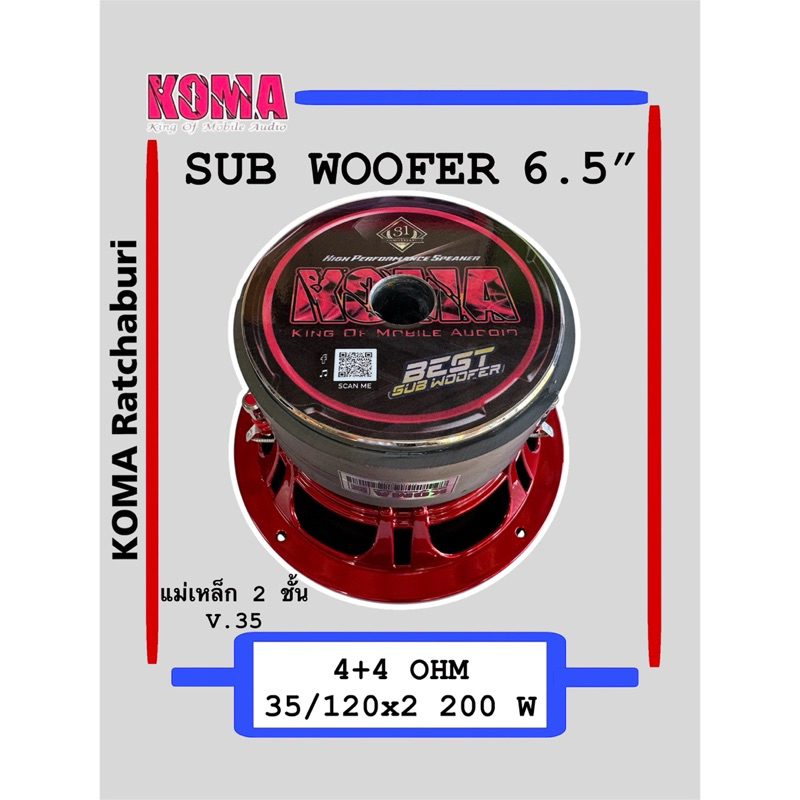 ดอกลำโพงซับ koma 6.5 นิ้ว ว้อยคู่ 4+4 Ohms. 200 W V.35/120/20x2 โครงหล่อ ของแท้ ซับบลูทูธ ของแท้ 100%