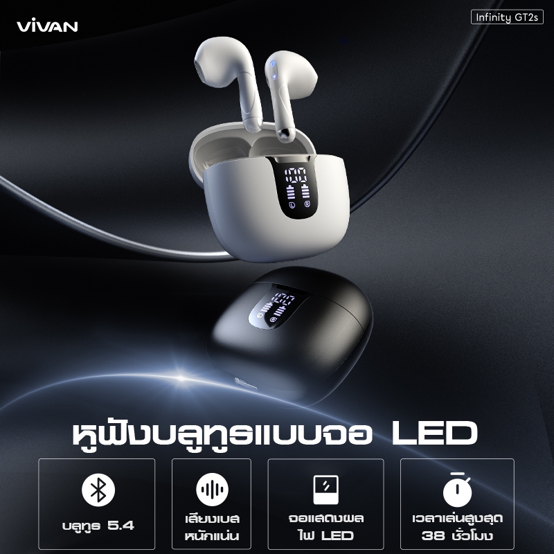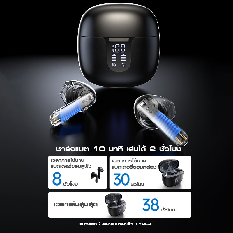 [Robot] รุ่น GT2S หูฟังบลูทูธ หูฟังบลูทูธไร้สายจอ LED เสียงเบสแน่น ลดเสียงรบกวน บลูทูธ 5.4 หูฟังกึ่งอินเอีย แบตอึด