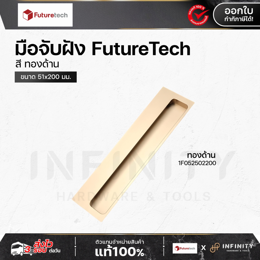 Futuretech มือจับฝัง อลูมิเนียม | 1F052 สี ทองด้าน/ดำด้าน ขนาด 200mm.