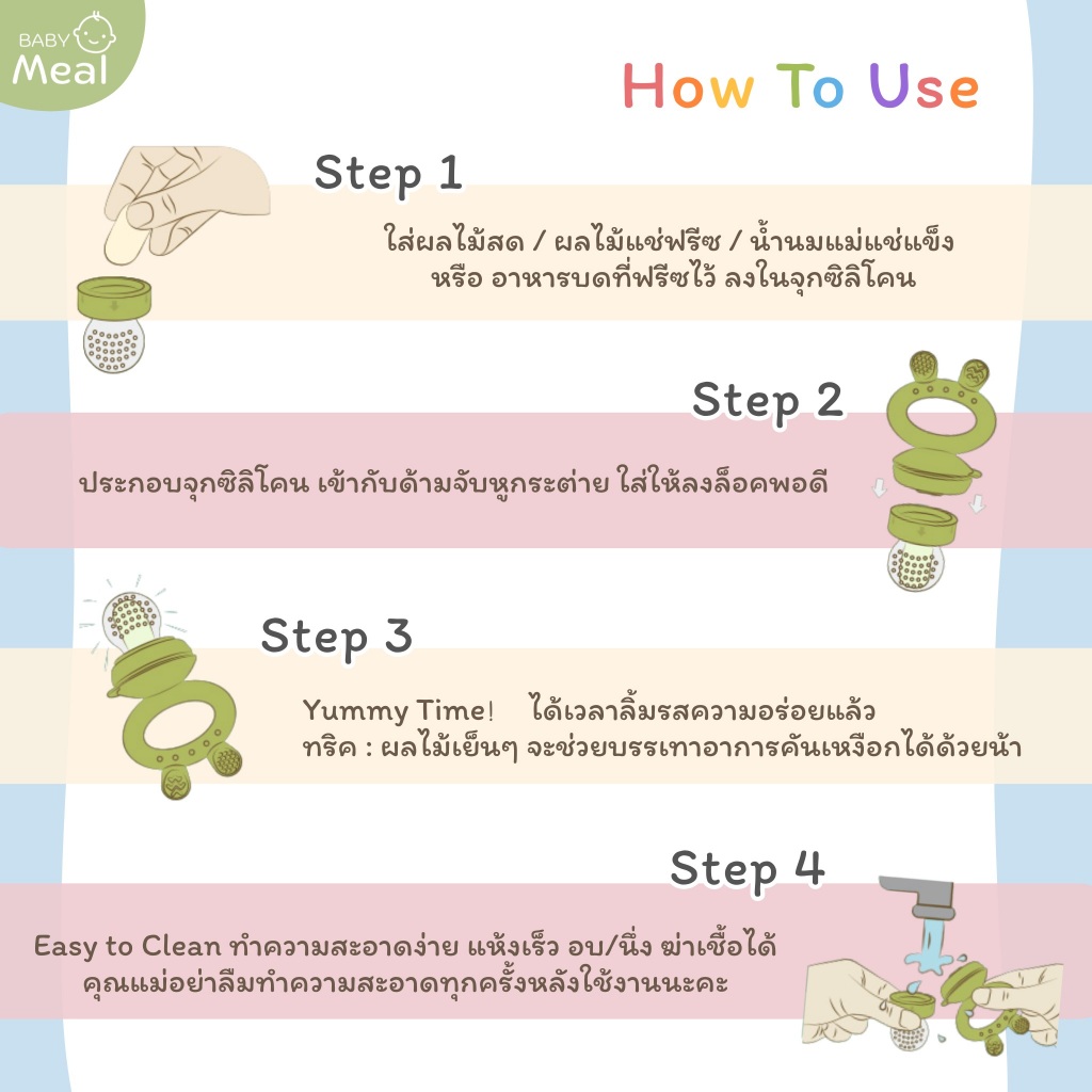 BabyMeal จุกดูดผลไม้ ด้ามจับซิลิโคน รุ่น Bunny แถมฟรี บล็อคแช่แข็งผลไม้ซิลิโคน พร้อมฝาปิด (Mini Ice Cube)