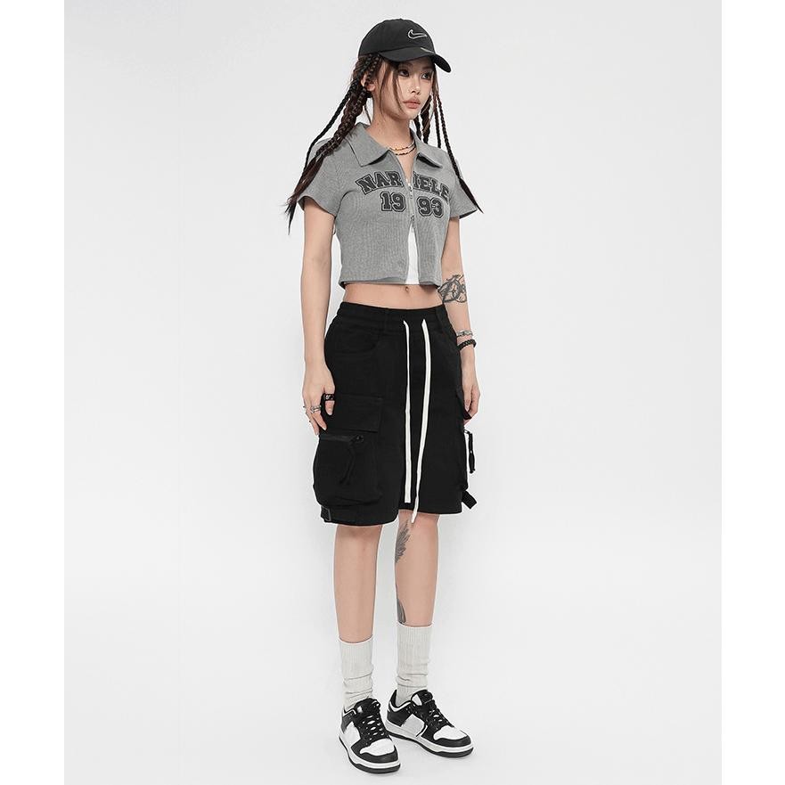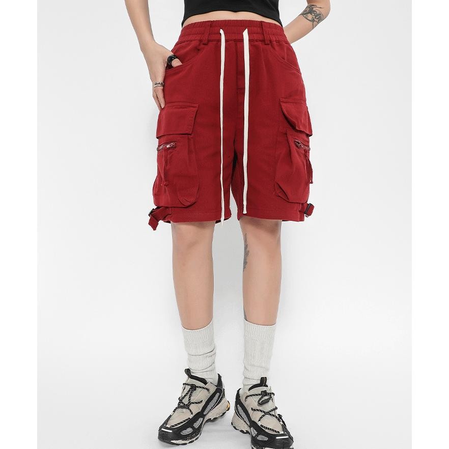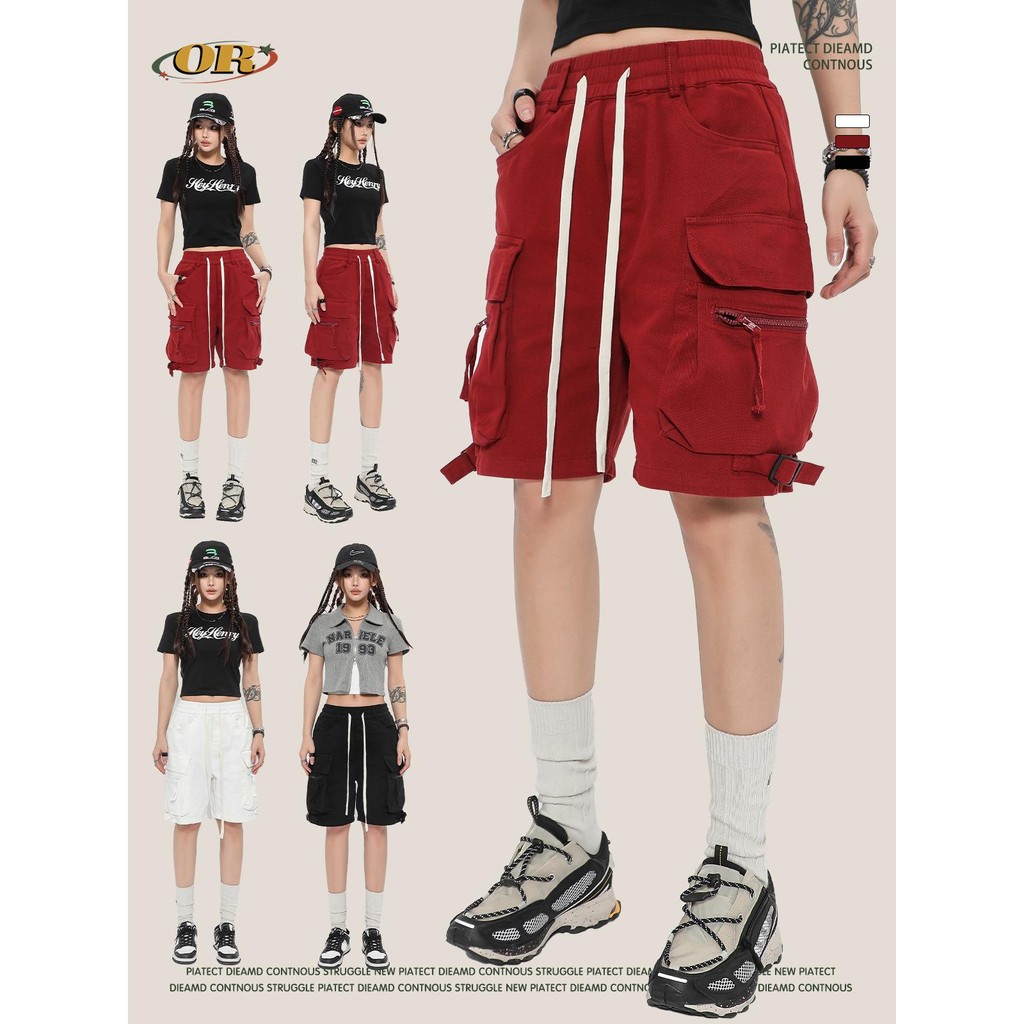 อเมริกันย้อนยุค กางเกงขาสั้น ทํางาน ฤดูร้อน สบายๆ กีฬา แฟชั่น สไตล์ญี่ปุ่น หลายกระเป๋า ขากว้าง สีทึบ M-5XL