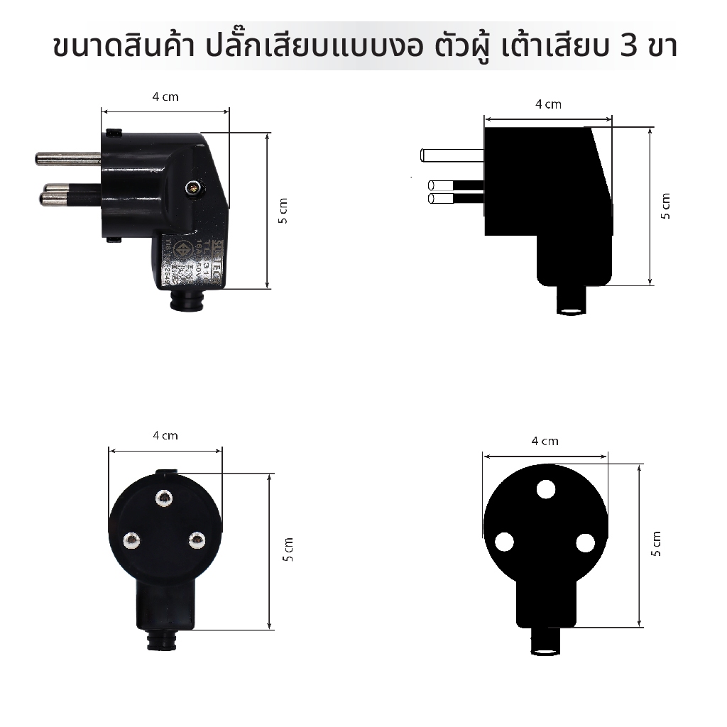 SUNTECH รุ่น TL3316 ปลั๊กเสียบแบบงอ ตัวผู้ เต้าเสียบ 3ขา สีดำ, สีขาว มาตรฐาน มอก.166-2549