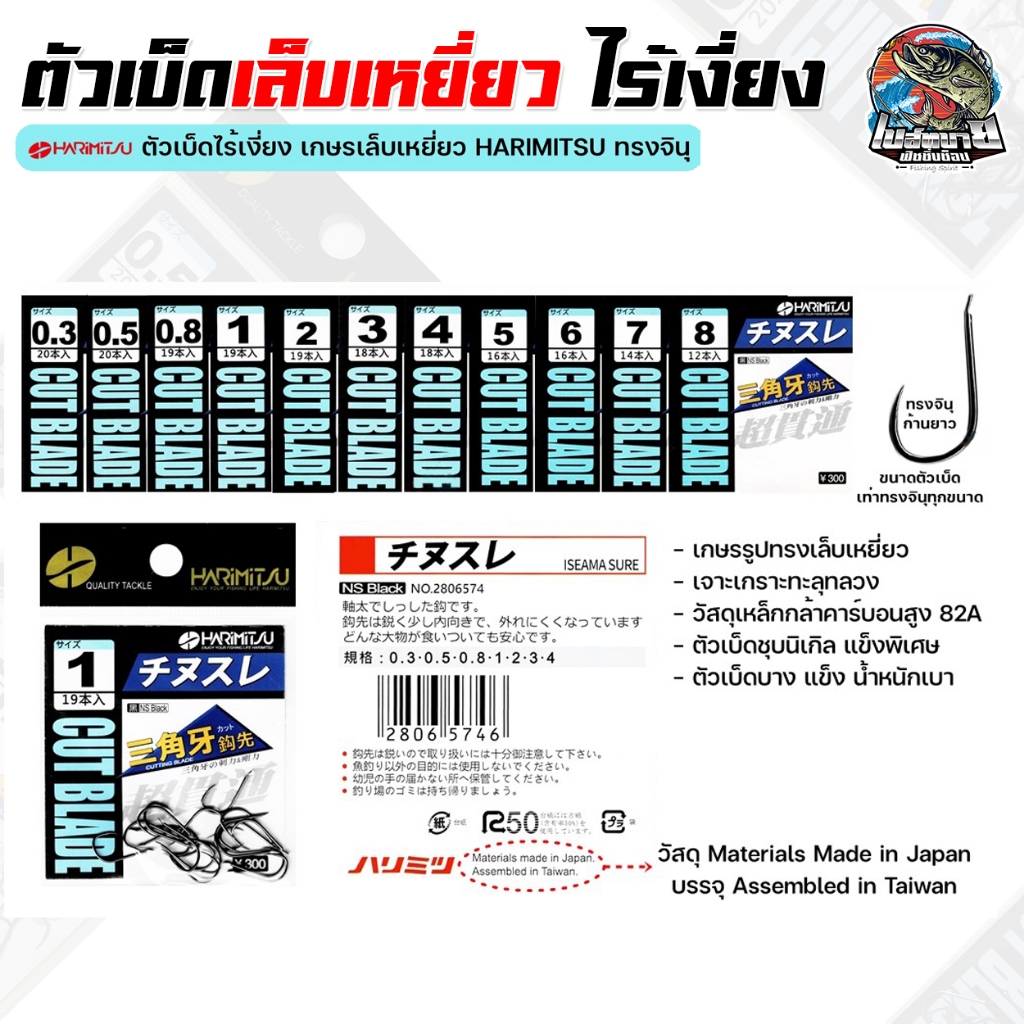 ตัวเบ็ด Harimitsu ( ฮาริมิทสุ ) ทรงจินุ เบอร์ 0.5 / 0.8 / 1.0 / 2.0 / 3.0 ปลายเกษร รูปทรงเล็บเหยี่ยว ตัวเบ็ดบาง แข็งแรง